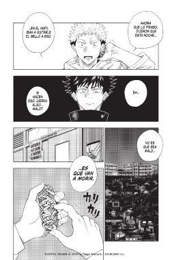 ahora ...en el insti, que lo pienso, iban a quitarle dijeron que el sello a eso. esta noche... si eh... hacen eso, ¿sería algo... malo? no es que sea malo... ...es que van a morir. ris ris JUJUTSU KAISEN © 2018 by Gege Akutami / SHUEISHA Inc.