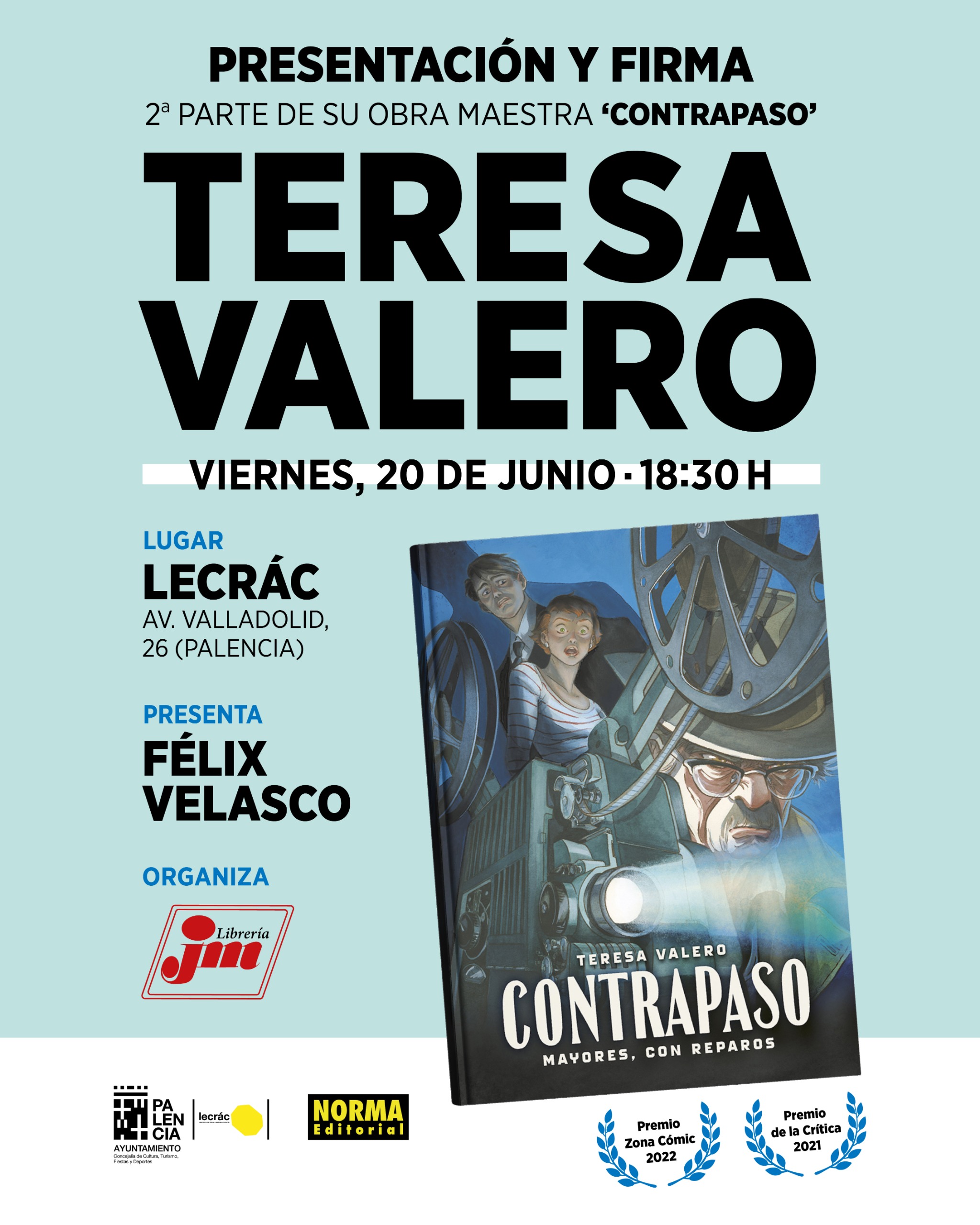 El viernes 20 de junio a las 18:30 tendremos la presentación de la nueva entrega de Contrapaso junto a su autora, Teresa Valero. El acto se llevará a cabo en el centro cultutral Lecrác de Palencia y estará moderado por Félix Velasco.