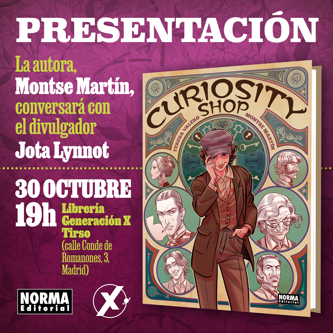 Las autoras de Curiosity Shop, Teresa Valero y Montse Martín, conversarán con el divulgador Jota Lynnot sobre su obra en la librería Generación X Tirso de Madrid el miércoles 30 de octubre a las 19:00.