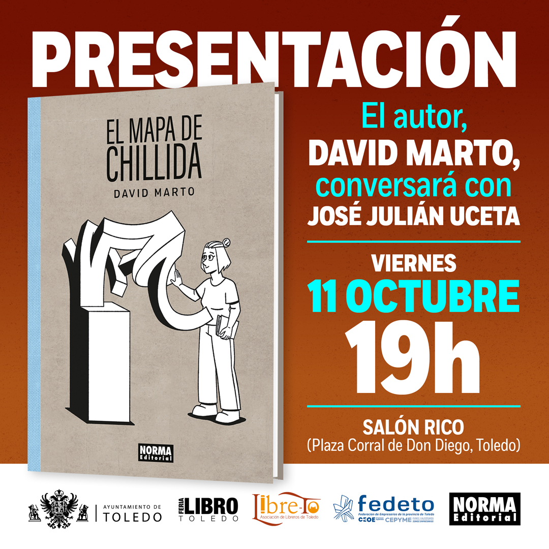 El viernes 11 de octubre a las 19:00, David Marto, autor de El mapa de Chillida, conversará con José Julián Uceta sobre la obra. El acto será en Salón Rico de Toledo.