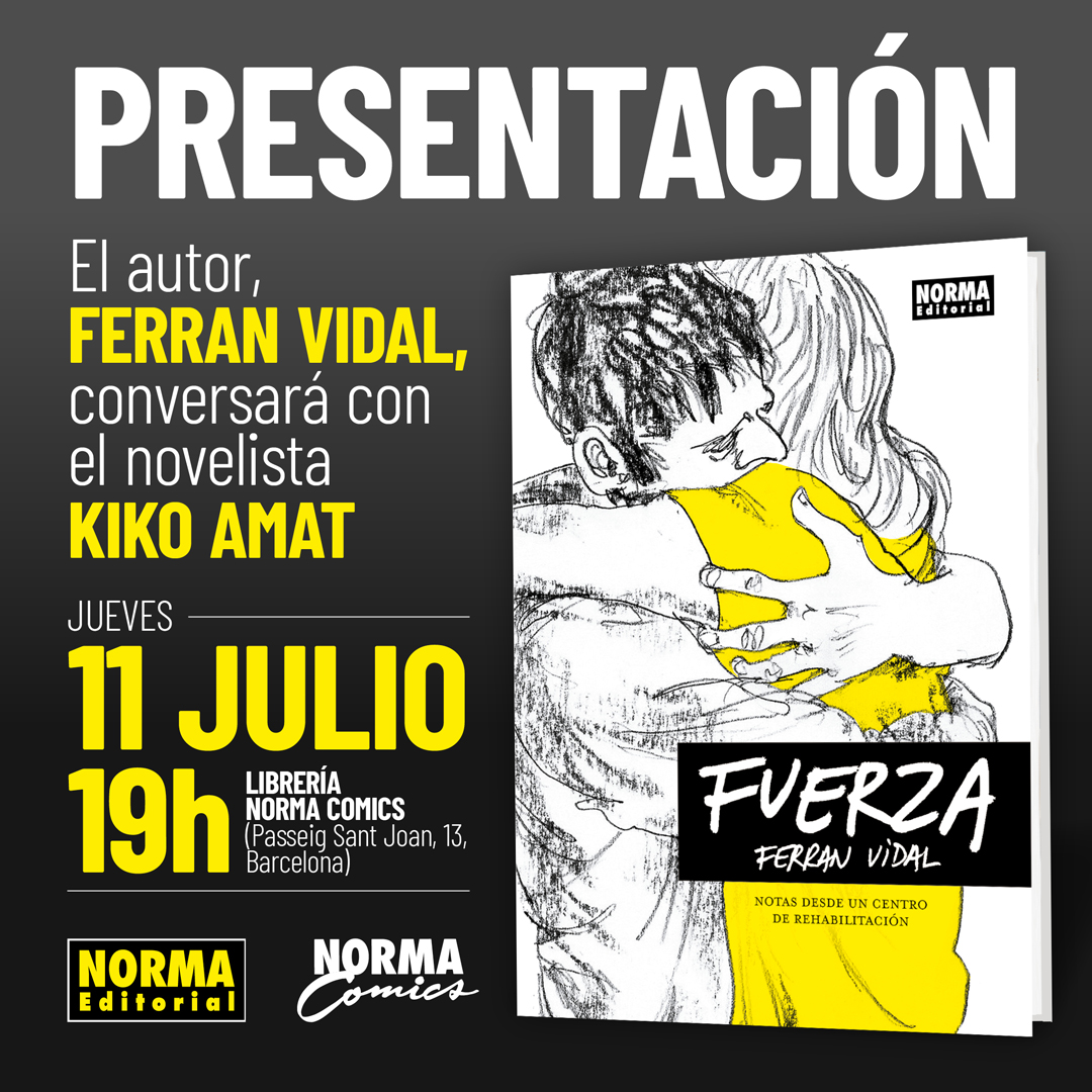 El jueves 11 de julio a las 19:00 se celebrará la presentación del nuevo cómic de Ferran Vidal, FUERZA, en la librería Norma Comics de Barcelona. El acto estará moderado por el reconocido novelista Kiko Amat.
