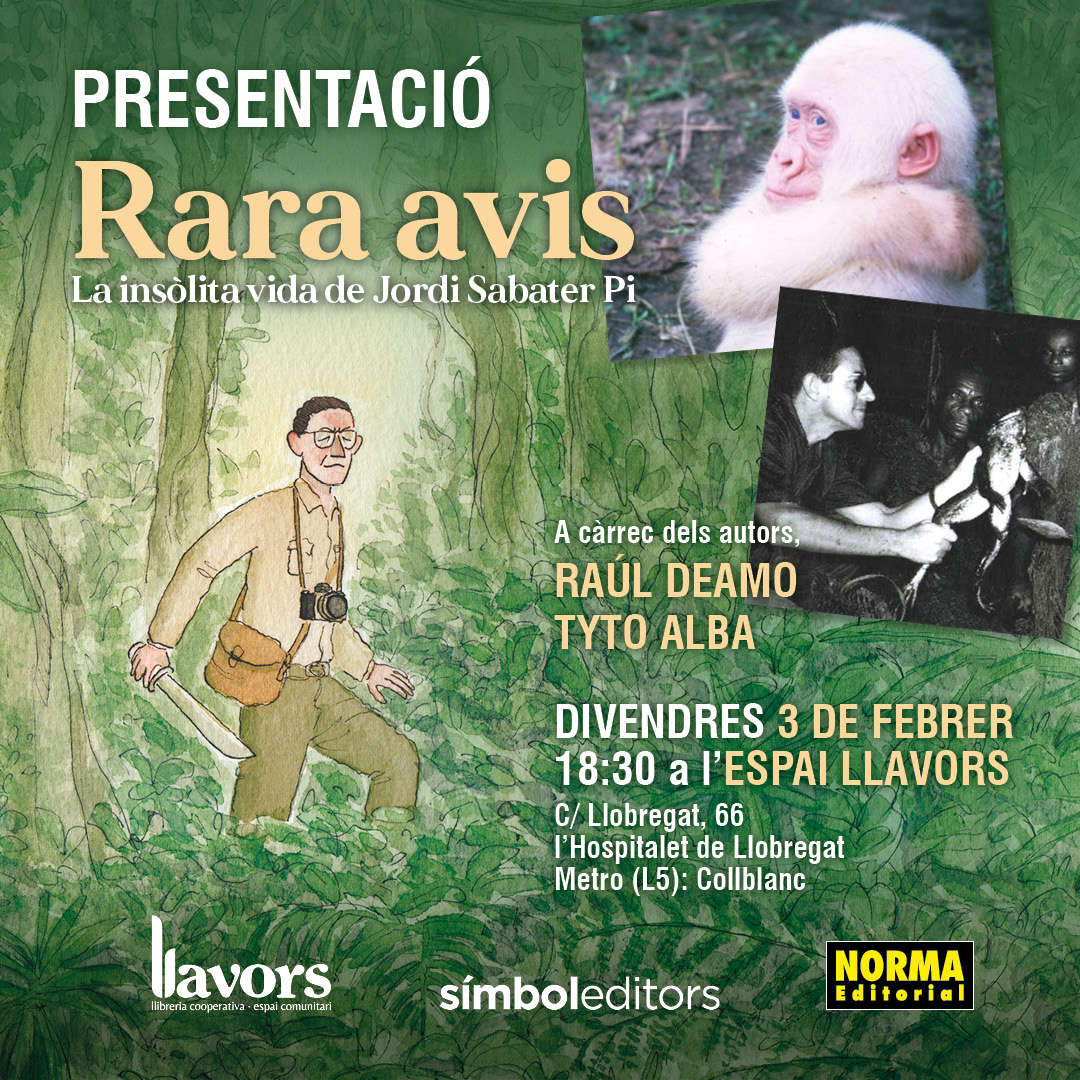 El viernes 3 de febrero a las 18:30 tendremos la presentación de Rara Avis. La insólita vida de Jordi Sabater Pi con sus autores, Raúl Deamo y Tyto Alba, en el Espai Llavors.