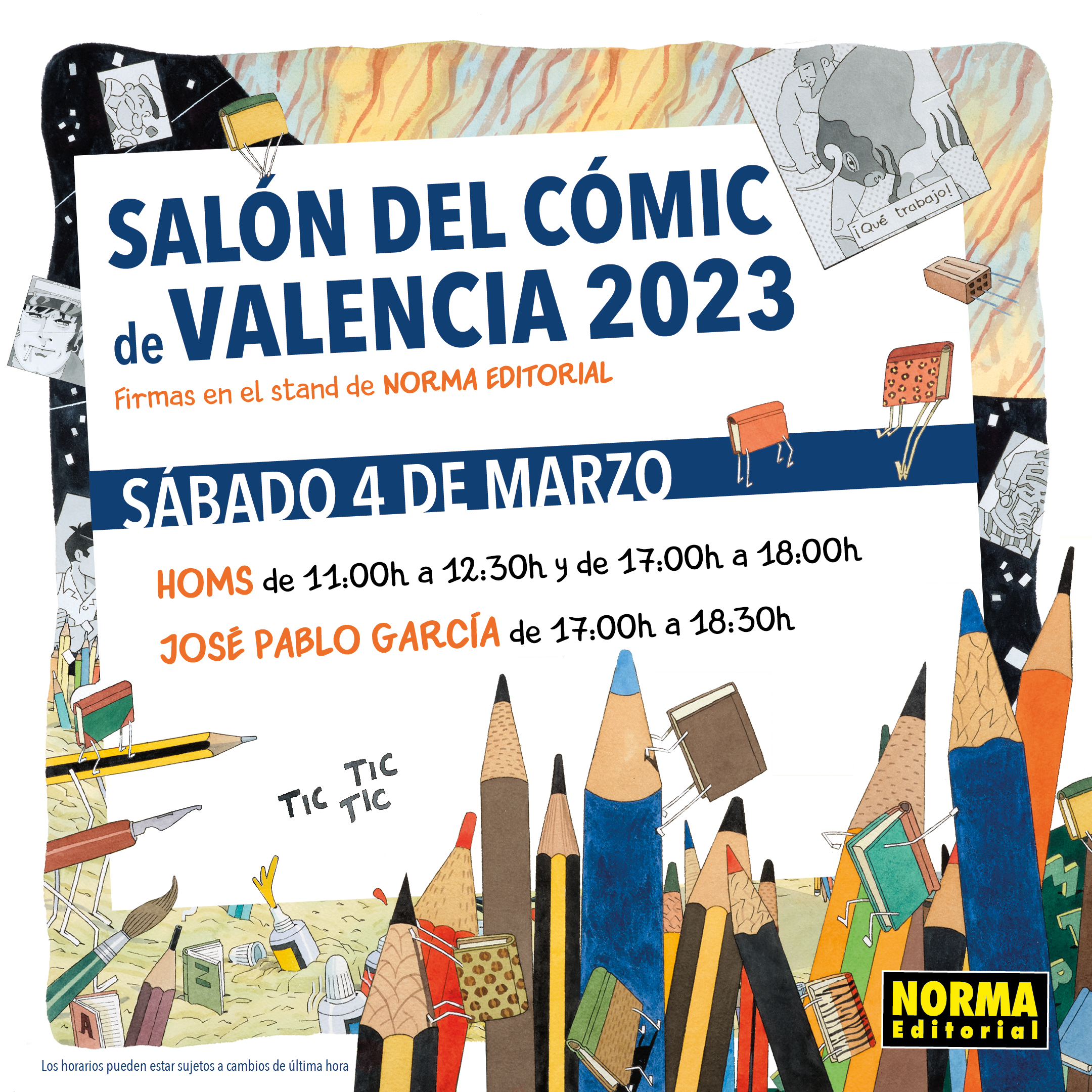 El sábado 4 de marzo tendremos en nuestro stand del Salón del Cómic de Valencia firmando al dibujante Homs de 11:00 a 12:30 y de 17:00 a 18:00. También firmará el ilustrador José Pablo García de 17:00 a 18:30.