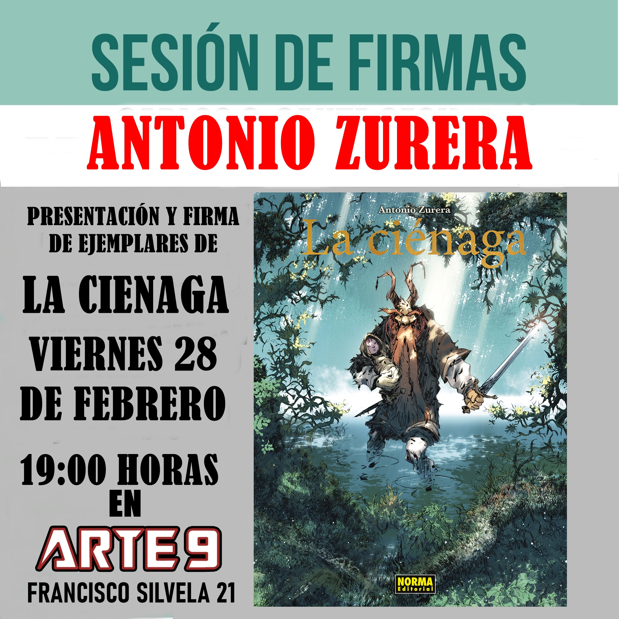 El viernes 28 de febrero a las 19:00 Antonio Zurera, auto de La ciénaga, presentará y firmará su obra en la librería Arte 9 de Madrid.