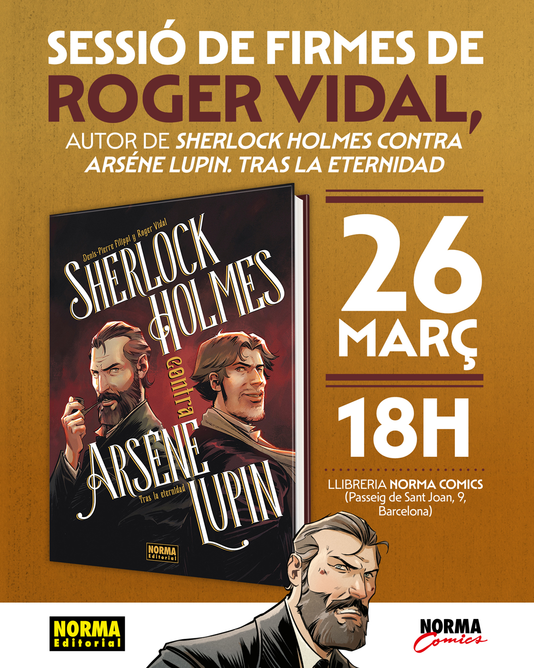 Sesión de firmas de Roger Vidal, autor de Sherlock Holmes contra Arséne Lupin. Tras la eternidad, el jueves 26 de marzo a las 18h en la librería Norma Comics (Passeig de Sant Joan, 9, Barcelona).