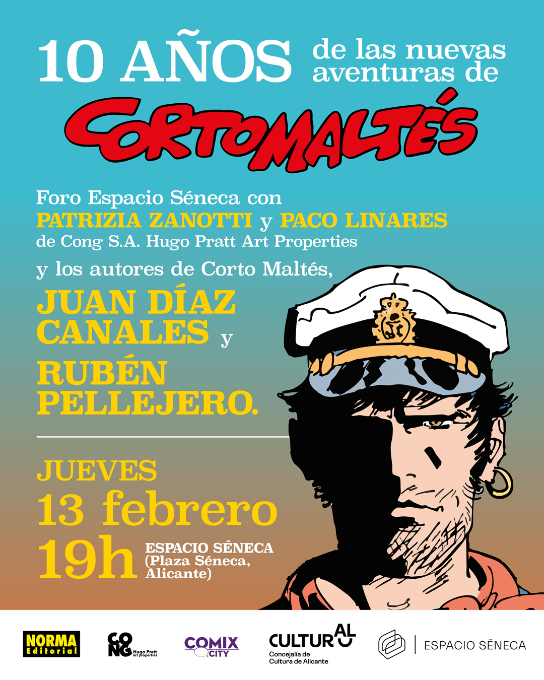 El jueves 13 de febrero a las 19:00 tendremos el simposio sobre los 10 años de las nuevas aventuras de Corto Maltés con los autores que recuperaron al mítico personaje de Hugo Pratt, el guionista Juan Díaz Canales y el dibujante Rubén Pellejero.El acto se llevará a cabo en el Espacio Séneca de Alicante y estará moderado por Patrizia Zanotti y Paco Linares de Cong S.A. Hugo Pratt Art Properties.