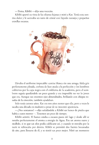 risa dulce y le acercaba un tarro de cristal con líquido naranja y pequeñas