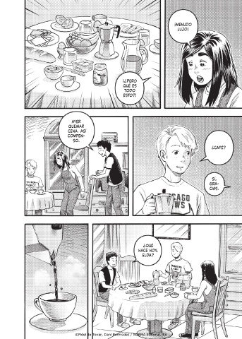¡menudo lujo! ¡¿pero qué es todo esto?! ayer quemar cena. así compen- so. ¿café? sí, gra- cias. ¿qué hace hoy, elda? ©Fidel de Tovar, Dani Bermúdez / NORMA Editorial, SA