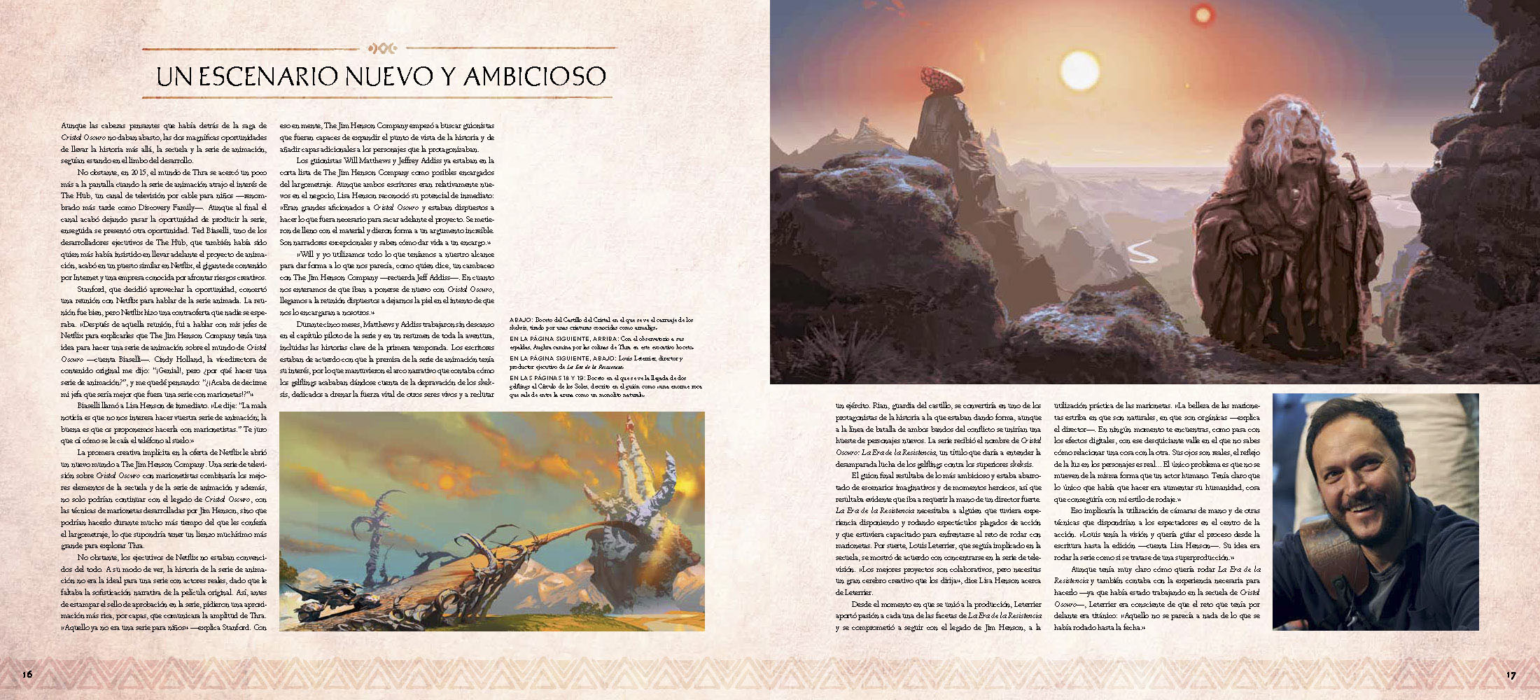 Este volumen de lujo, que te sumerge en el increíble proceso creativo de la serie, revela cómo los Creature Shop de Jim Henson, el legendario diseñador de personajes y vestuario Brian Froud y el director David Leterrier dieron vida a Thra y a sus habitantes con ayuda de muchos otros artistas y marionetistas, pero siempre de acuerdo al legado de la película original.