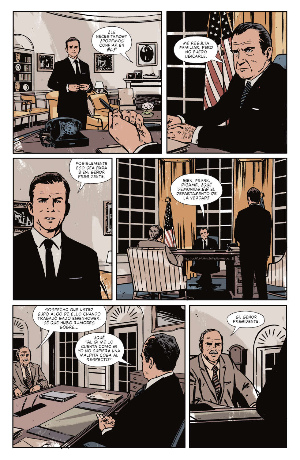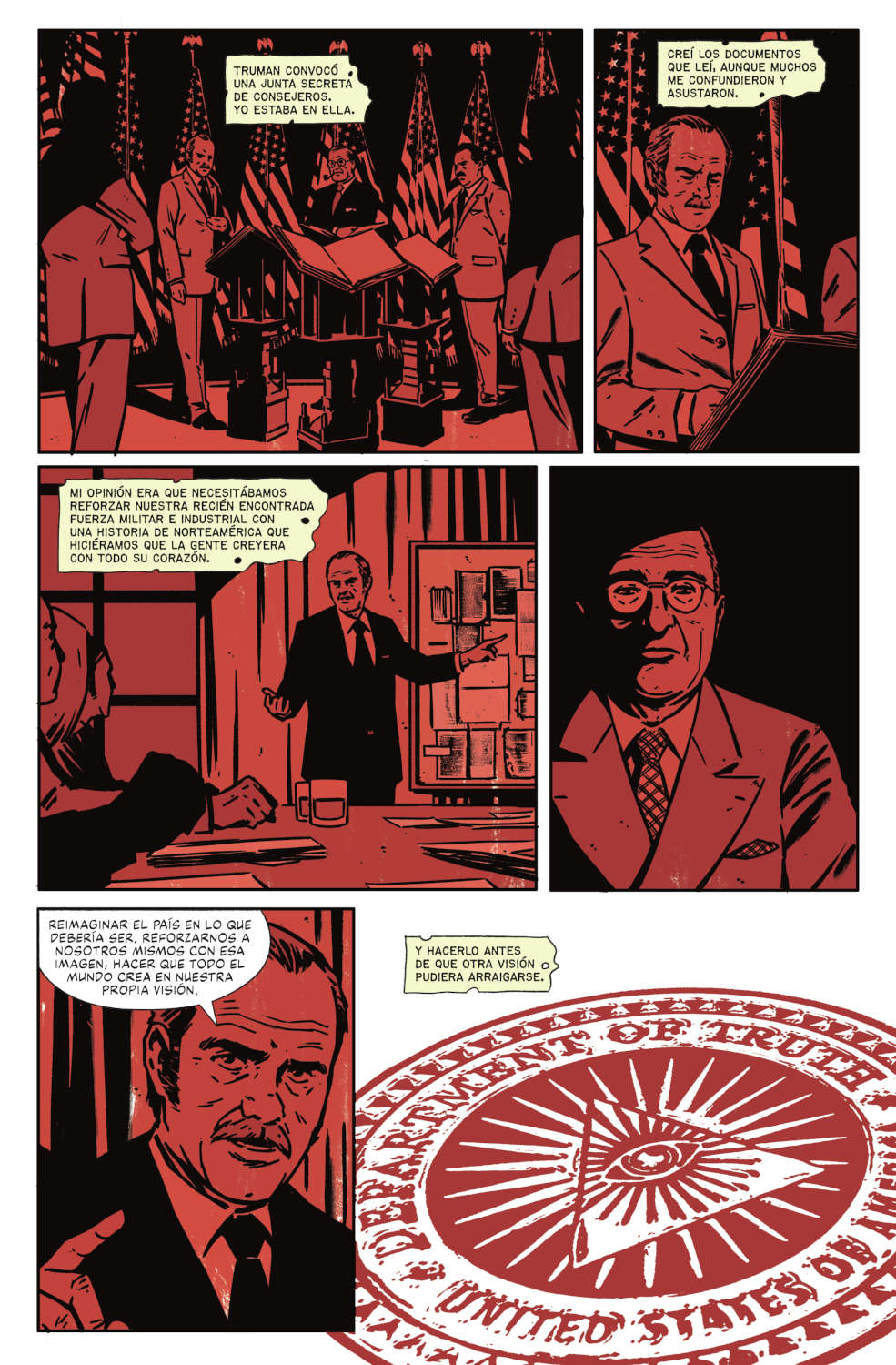 Las profundas y entrelazadas raíces del Departamento de la Verdad han crecido durante siglos, antes de que los mismísimos Estados Unidos existiesen. Viajemos junto a un joven Lee Harvey Oswald en su descubrimiento de esta historia oculta y su complicado ascenso al alto mando del departamento. Desde los Hombres de Negro a Mothman, hasta la llegada a la luna, descubriremos los terribles secretos que esperan en los archivos...