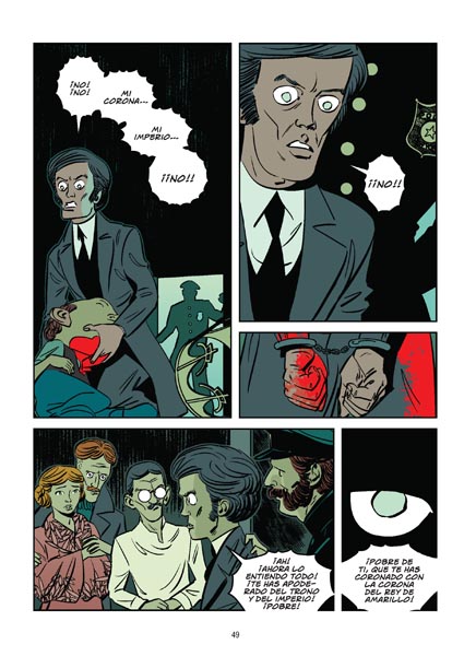 El texto de una obra de teatro, titulada El rey de amarillo, despierta la locura en la mente de todo aquel que lo lee. Una extraña atracción capta a todo el que se cruza con la obra y, tras leerla, un nuevo mundo domina su imaginación y realidad. A través de una serie de historias interconectadas, Robert W. Chambers sorprendió a los lectores de finales del s.XIX con su desconcertante e innovador terror cósmico. En la presente edición, I.N.J. Culbard adapta al cómic este clásico que vuelve a estar en boca de todos gracias a la serie de televisión True Detective.