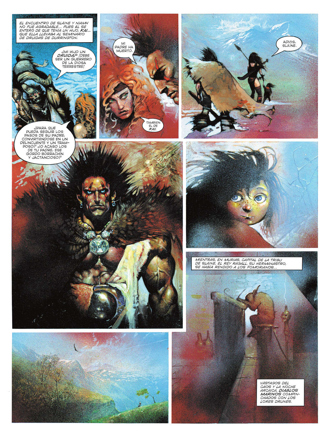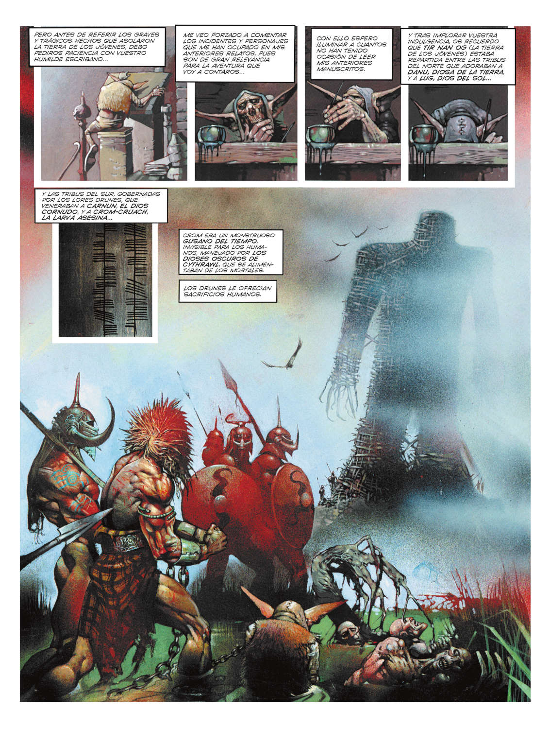 El Dios cornudo es la historia definitoria de Sláine y marcó todo un hito en el noveno arte que ha sido de gran inspiración para muchos artistas gracias a las épicas escenas bélicas que evocan el trabajo de Frank Frazetta.