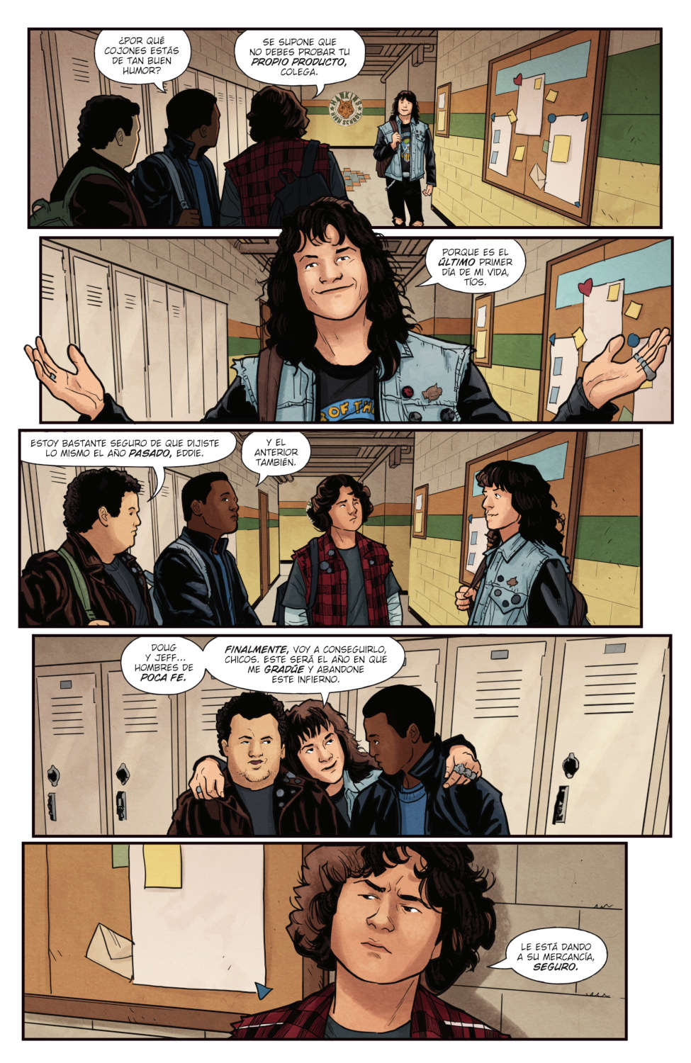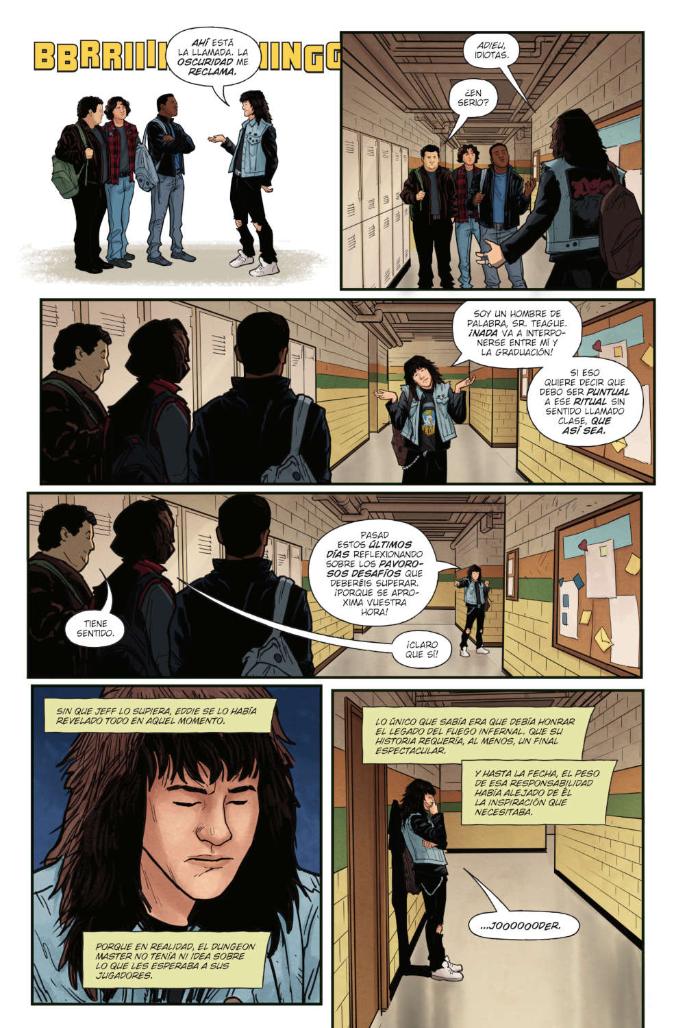 Son los primeros días de instituto de Mike, Lucas y Dustin y hace mucho tiempo que no se sentían tan perdidos. No es solo la nueva etapa que inician, sino también la ausencia de Will y Ce, que se han alejado de Hawkins. Por eso, cuando conocen a Eddie y al Fuego Infernal, todo son dudas. ¿Entrarán en el club de juegos de rol del instituto? ¿Conseguirán confiar en Eddie, a pesar de su fama? ¿Aceptarán jugar una nueva campaña sin que estén sus amigos ausentes?