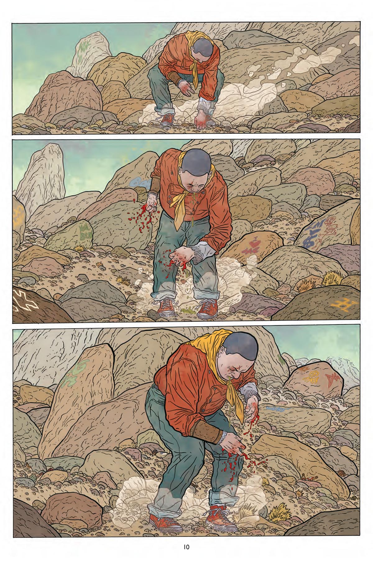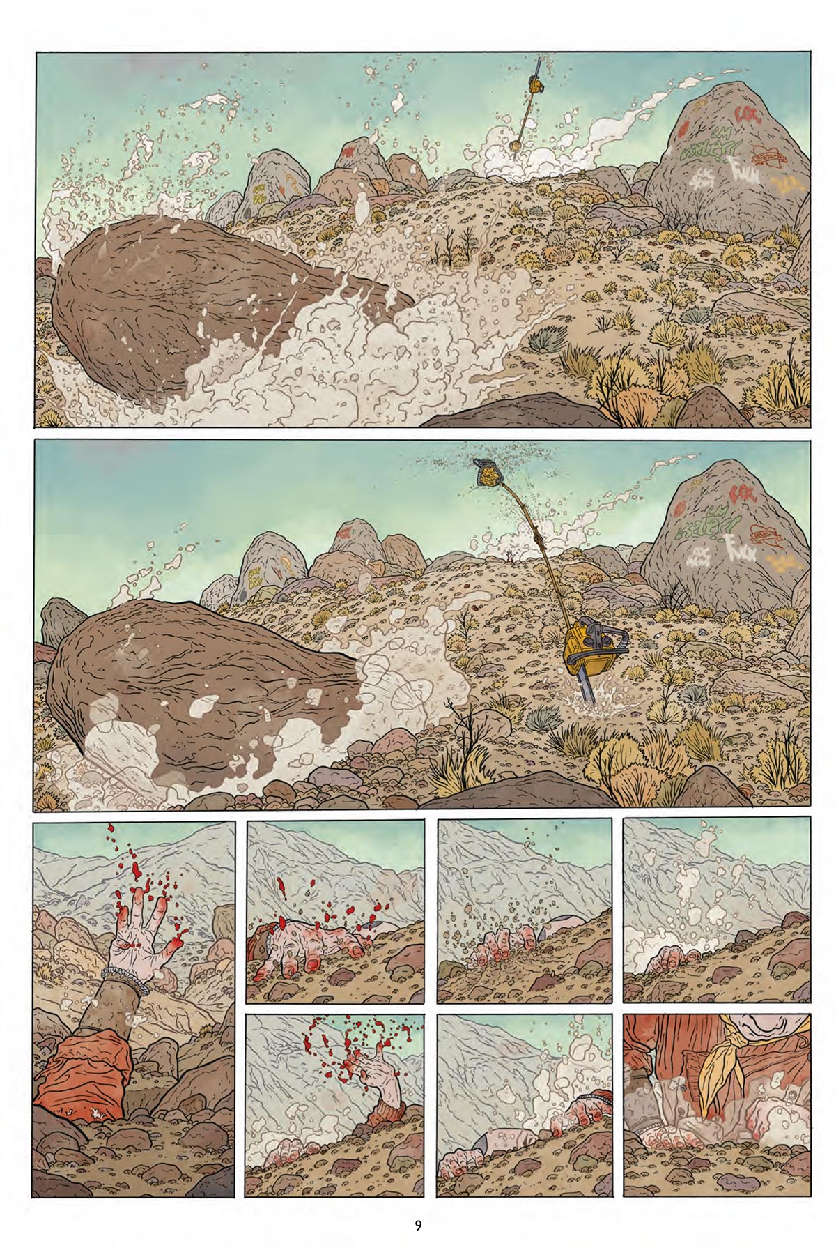 Segunda entrega de Shaolin Cowboy, serie escrita y dibujada por el historietista Geof Darrow (Big Guy y Rusty el chico robot). En este volumen —titulado Buffé de extras—, el legendario dibujante de Hardboiled empuja al impasible protagonista de la colección a una batalla campal en pleno desierto contra una legión de zombis. El resultado son 130 páginas hipnóticas, repletas de acción, ultraviolencia y rebanadas de carne seca salpicada de insectos y cortadas a ritmo de motosierra. Probablemente no sea el argumento más sofisticado que hayas leído, pero, a su lado, cualquier película o serie de zombis te parecerá a partir de ahora un modelo exquisito de cortesía y urbanidad. Lo cierto es que a Darrow le divierte no dejar títere con cabeza. ¡Y bien que se lo agradecemos!