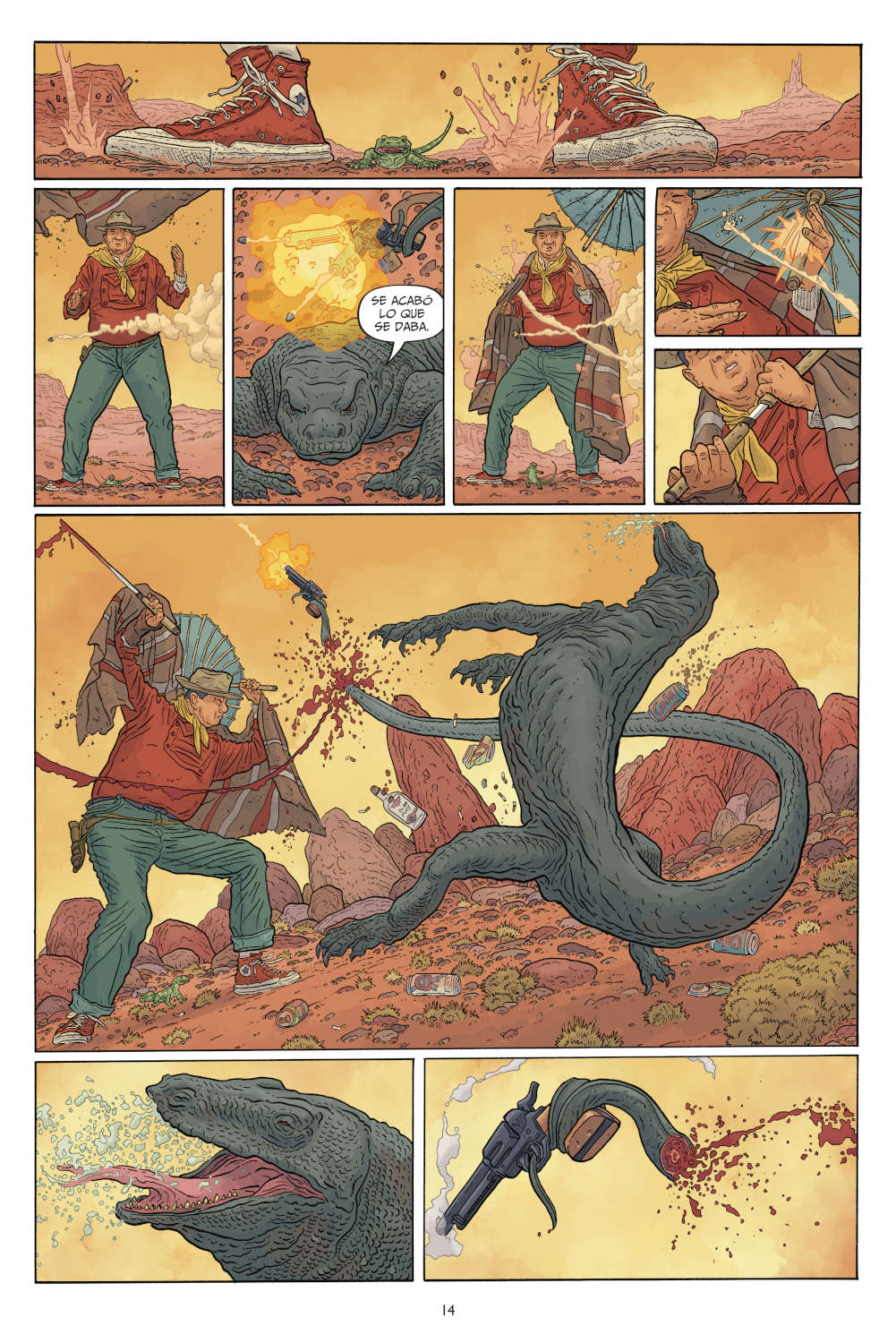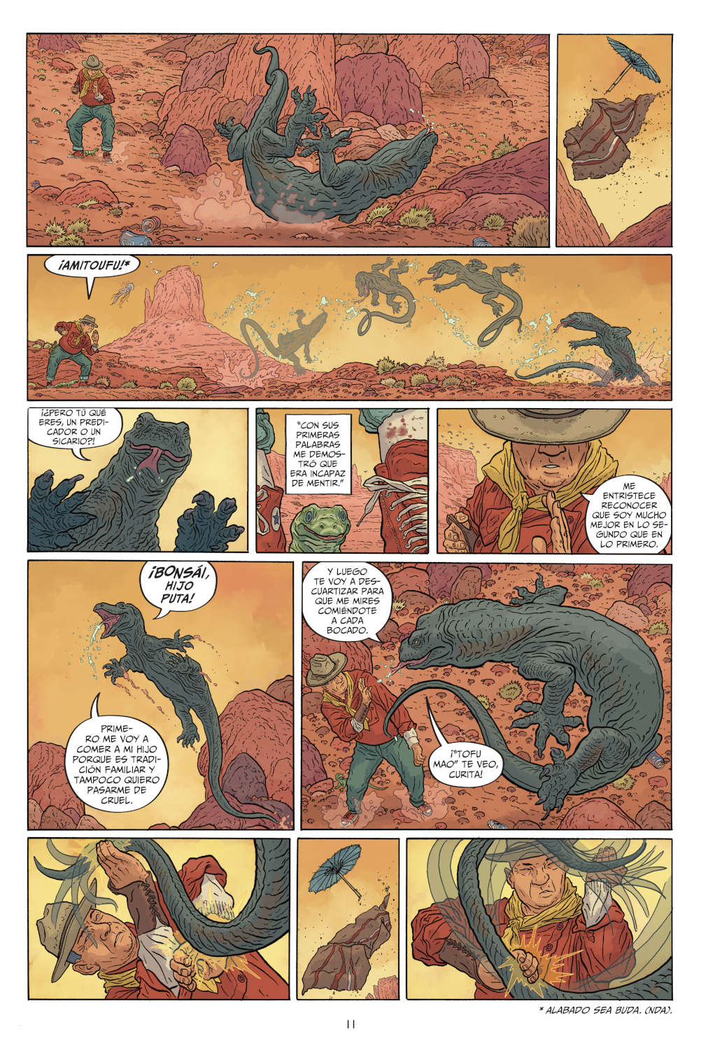 Un nuevo volumen de las aventuras del vaquero maestro del kung fu con más locuras que nunca. Alucinarás con las increíbles peleas contra un lagarto parlanchín, un pterodáctilo, un cabezón bigotudo metamórfico montado en una medusa gigante, bandadas de pájaros, un gran pollo desplumado y muchísimos más enemigos dibujados con un detalle y maestría inigualables.