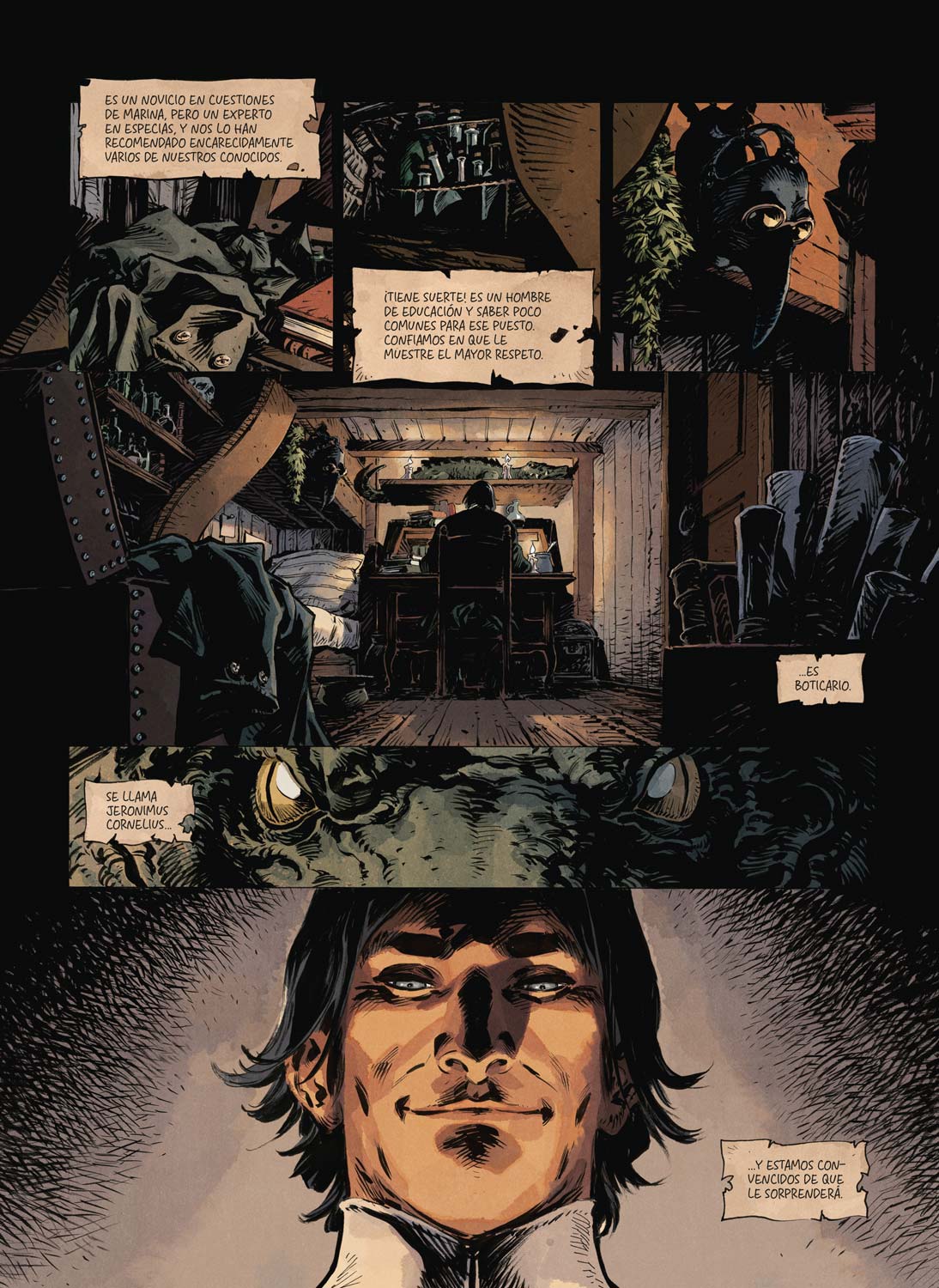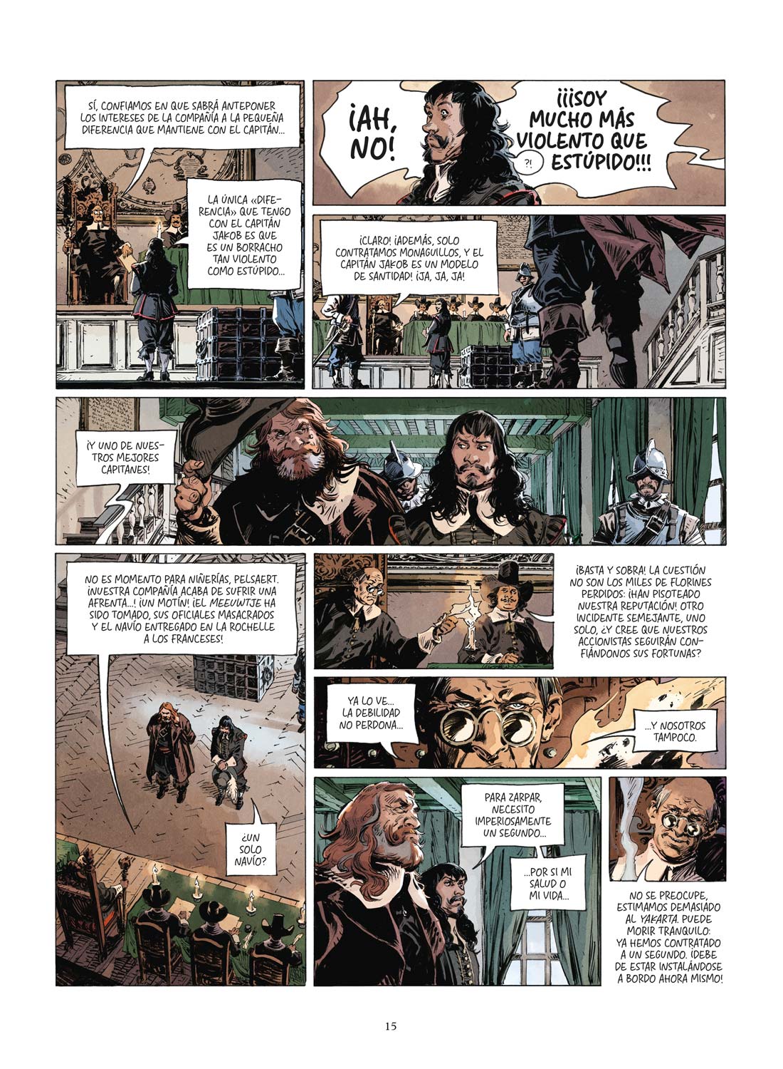 Solo los desesperados se arriesgan a embarcar en el Yakarta. A bordo, una tripulación salida de los bajos fondos de Ámsterdam y suficiente oro y diamantes para despertar la codicia más salvaje. Un barril de pólvora sobre un infierno flotante. Invitada improbable en esta travesía hacia la pesadilla, Lucretia Hans se convierte en la única que puede evitar que Jeronimus Cornelius, boticario hereje y arruinado, encienda la mecha… Buen viaje.