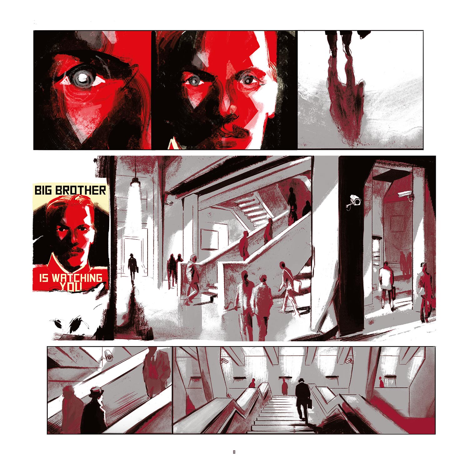 El magnífico historietista Xavier Coste firma una brillante y personalísima adaptación del clásico de la ficción distópica escrito por George Orwell en 1949.