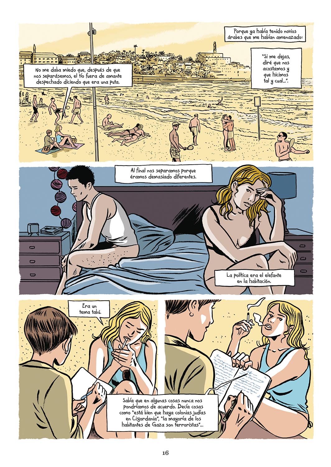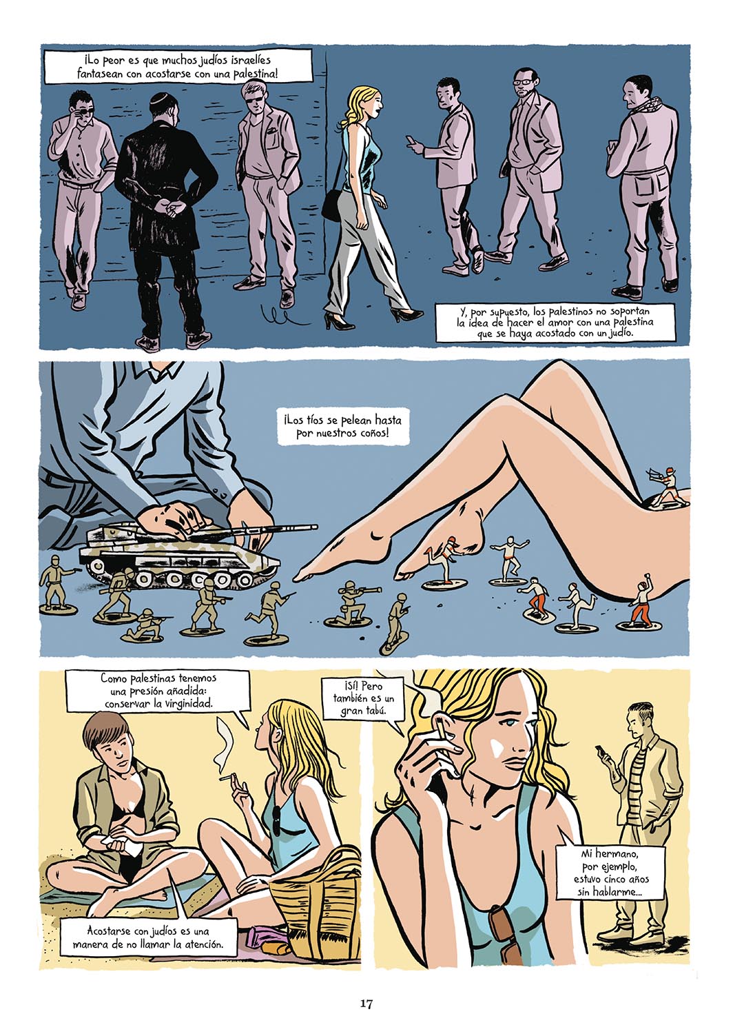 Construida como un reportaje, esta novela gráfica explora una de las facetas más desconocidas del conflicto palestino-israelí: las relaciones amorosas y sexuales, partiendo de toda clase de testimonios y desde múltiples perspectivas.