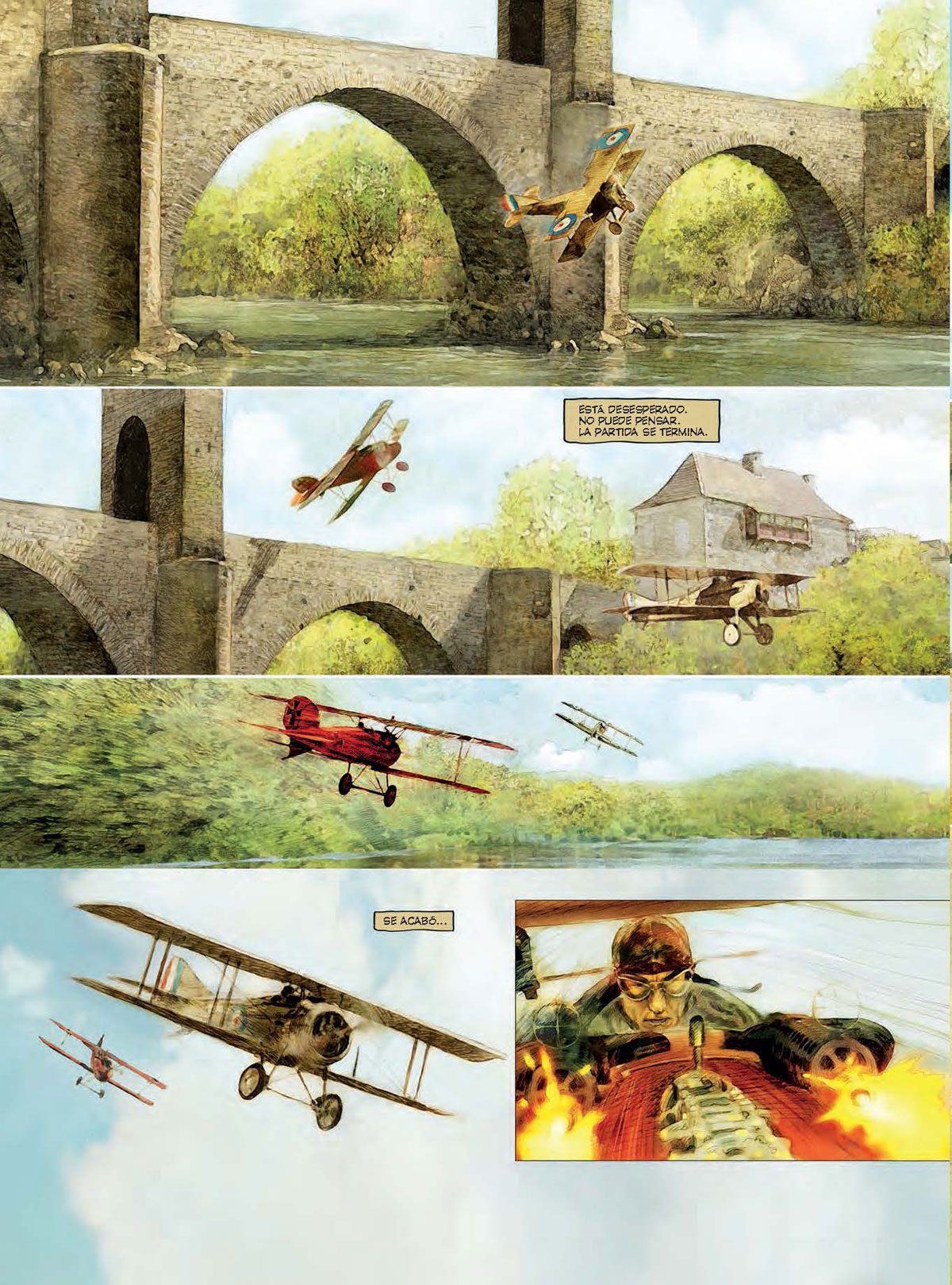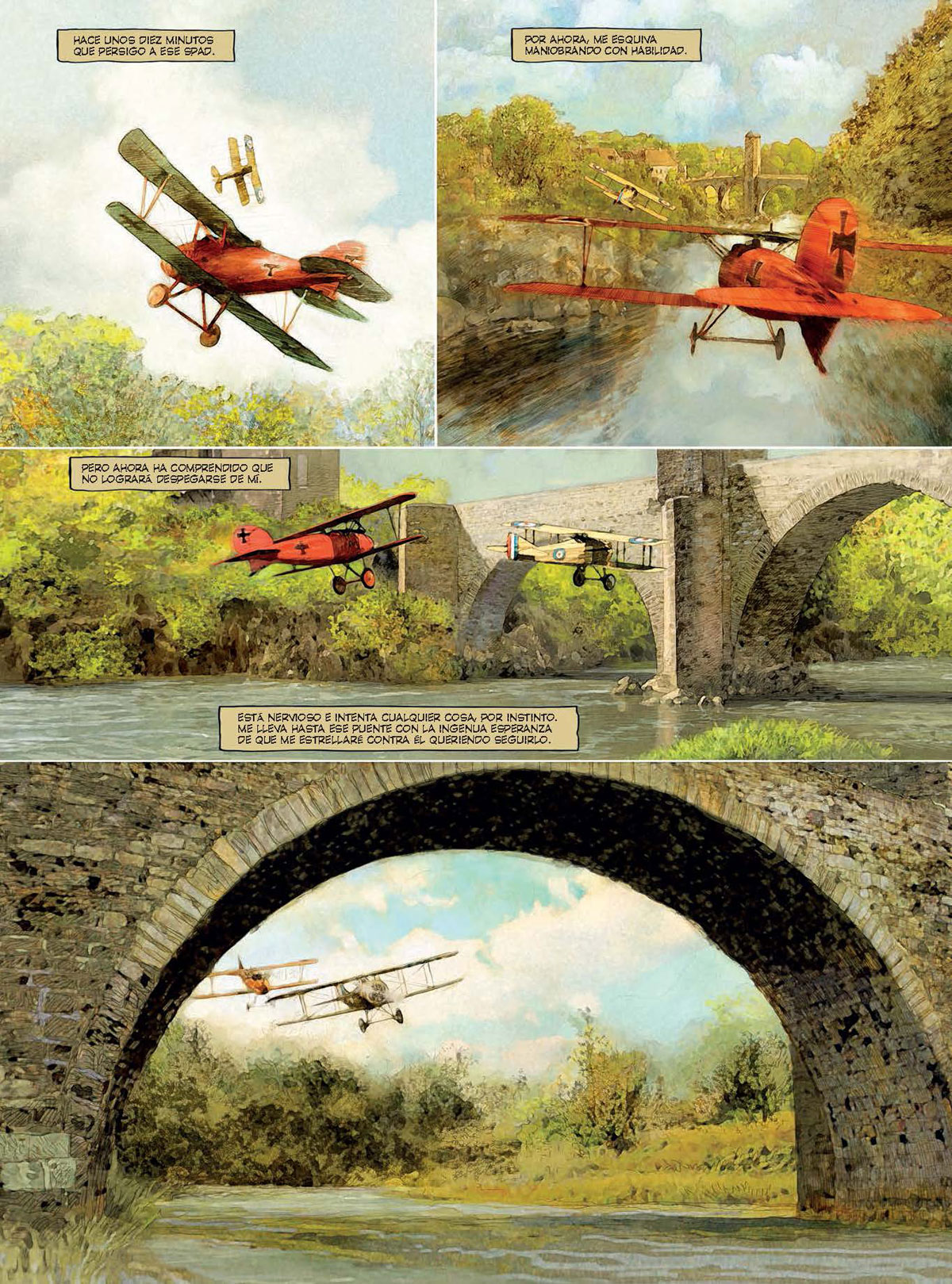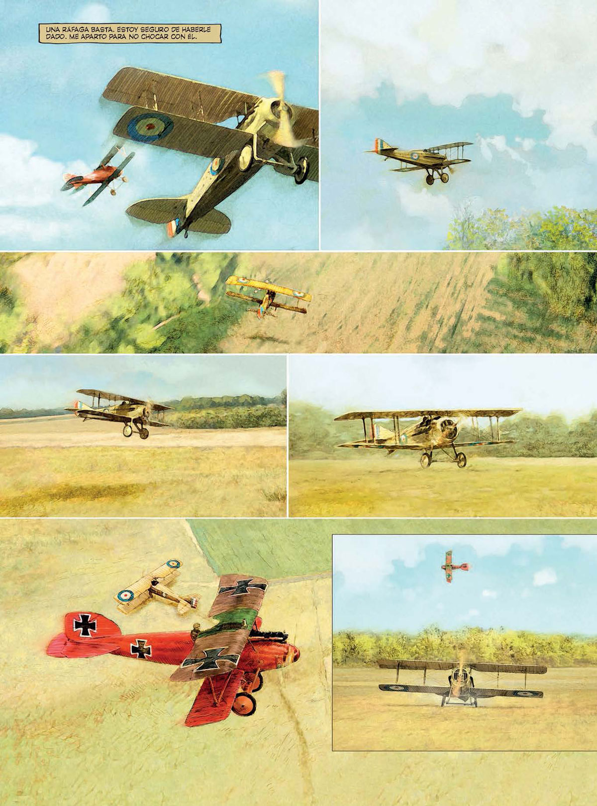 tropas aliadas. El joven inicia la que será una carrera legendaria con las primeras batallas aéreas, donde no había táctica que seguir ni reglas que respetar; cruentas afrentas que recuerdan más los antiguos combates cuerpo a cuerpo que las guerras modernas. Fuera del avión, Manfred también es implacable y dejará un reguero de sangre allá por donde pase, como parte de su entrenamiento militar.