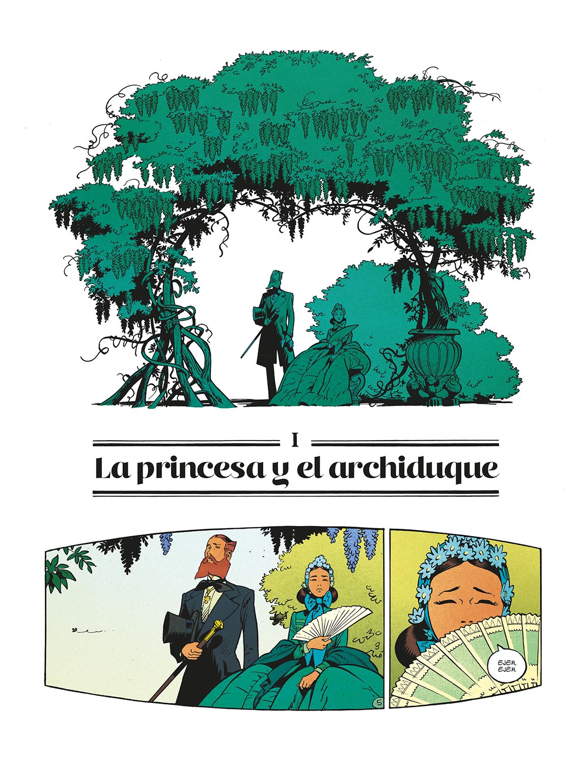La princesa belga Carlota protagonizó uno de los destinos más singulares en la historia de la realeza europea del siglo XIX al casarse con Maximiliano de Austria, pasando a formar parte de la poderosa casa de Habsburgo. A partir de entonces, practicó las artes de la diplomacia, la guerra y las puñaladas por la espalda. Una parte fundamental de su vida transcurrió en América, donde acompañó a su marido como emperatriz de México en un arriesgado viaje de conquista. El guionista Fabien Nury (Érase una vez en Francia, Katanga) y el dibujante Matthieu Bonhomme (Esteban) recrean la biografía de la emperatriz Carlota en una apasionante historia que presentamos reunida en dos volúmenes integrales.