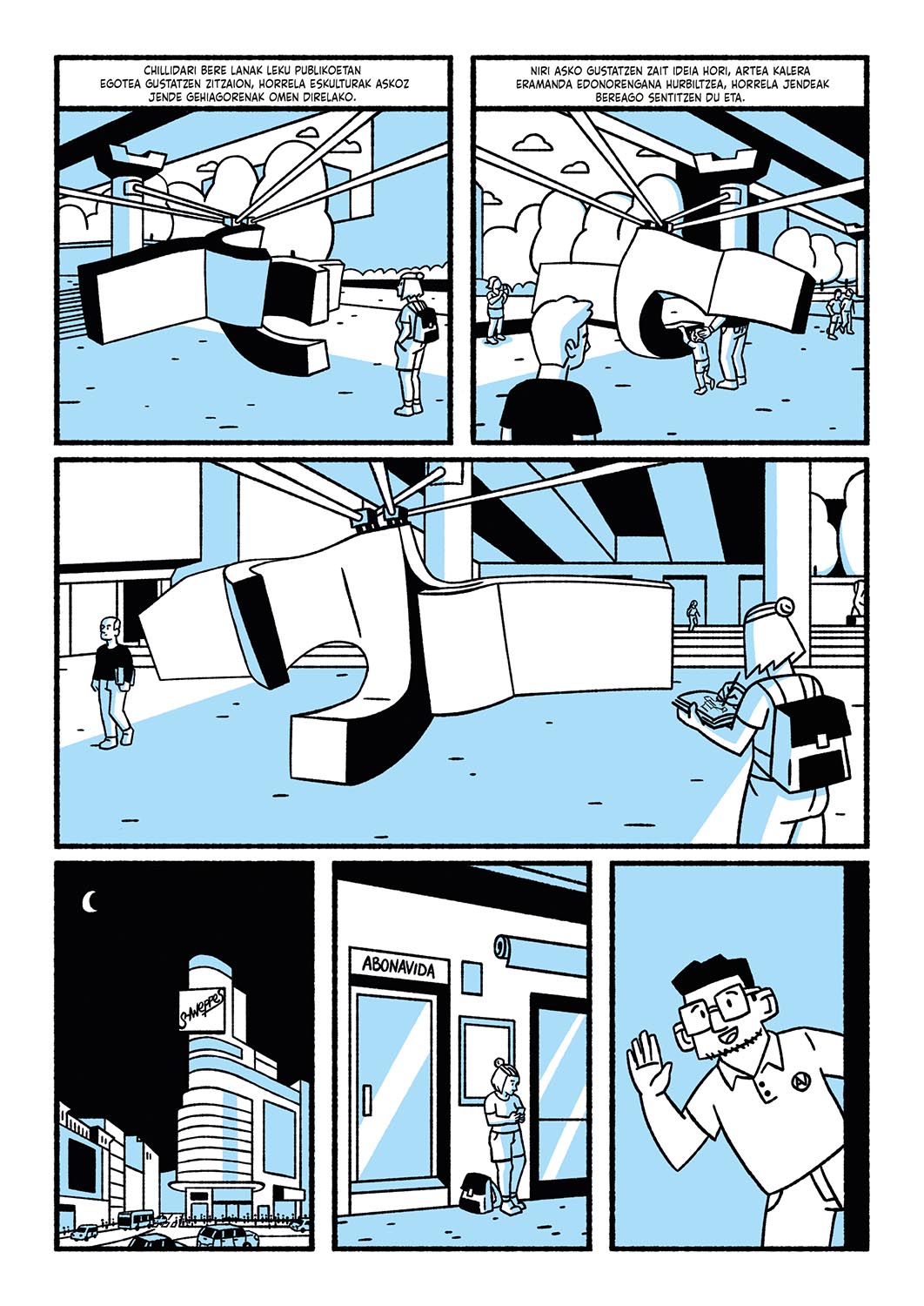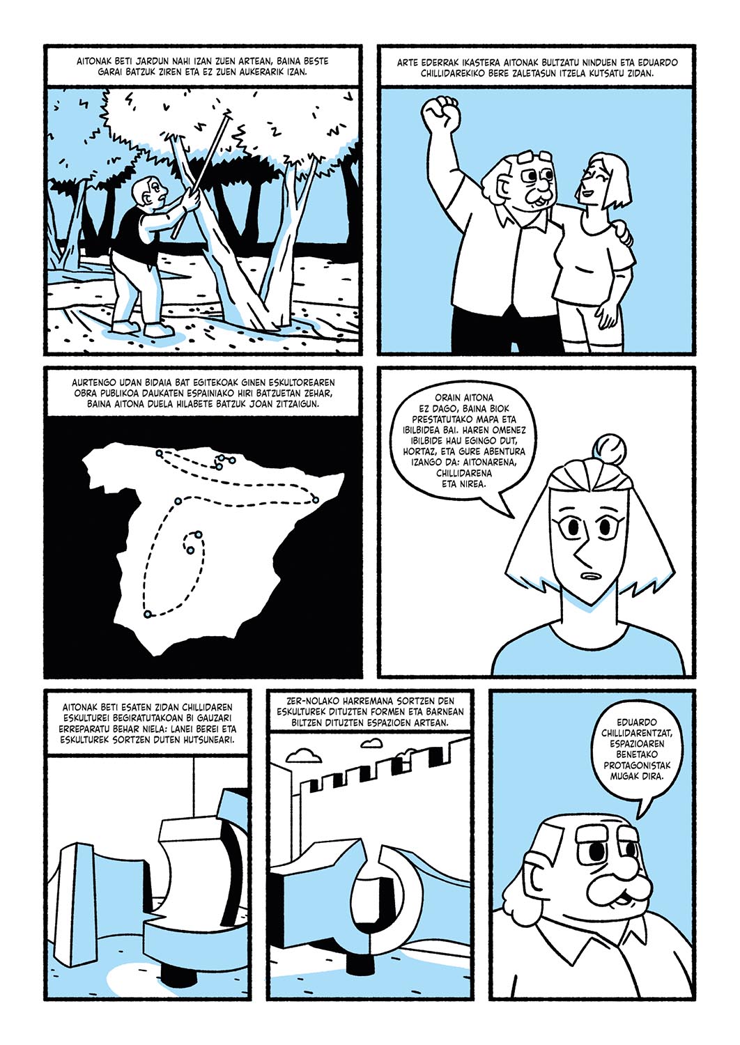 Eleberri grafiko honetan, David Marto marrazkilariak Chillidaren lana ezagutzera gonbidatzengaitu, euskal eskultore handiaren obrarekin maiteminduta dagoen ikasle gazte baten begienbitartez.