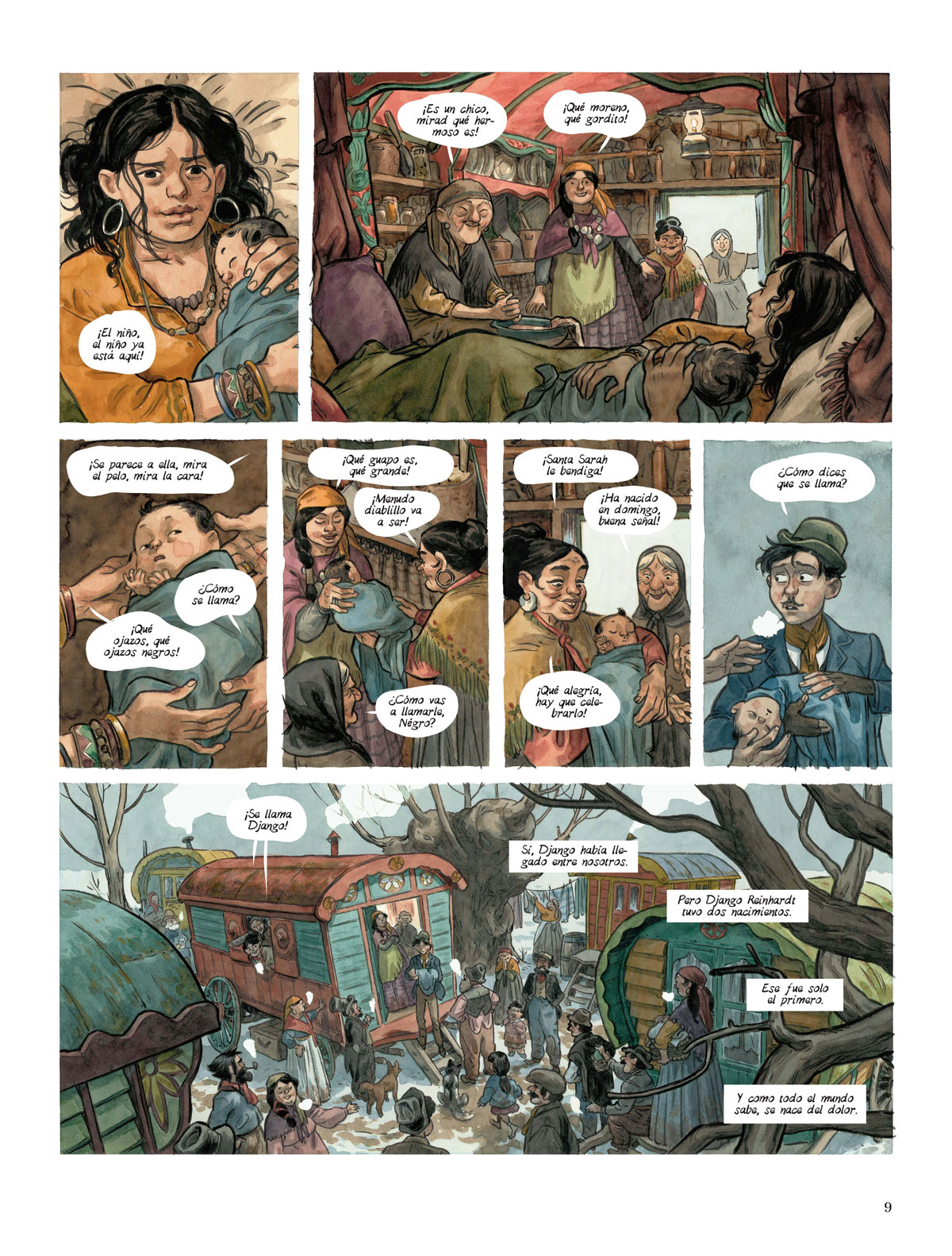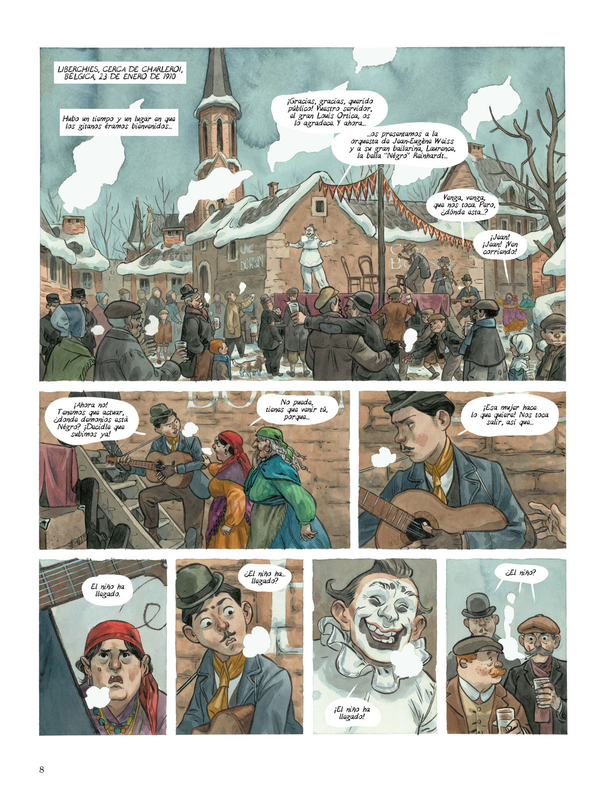 Salva Rubio –El fotógrafo de Mauthausen– y Ricard Efa –Sola–, que ya nos deslumbraron con Monet. Nómada de la luz, nos narran ahora una apasionante historia de autosuperación que supone el nacimiento de una leyenda surgida de entre las llamas: Django. Mano de fuego.