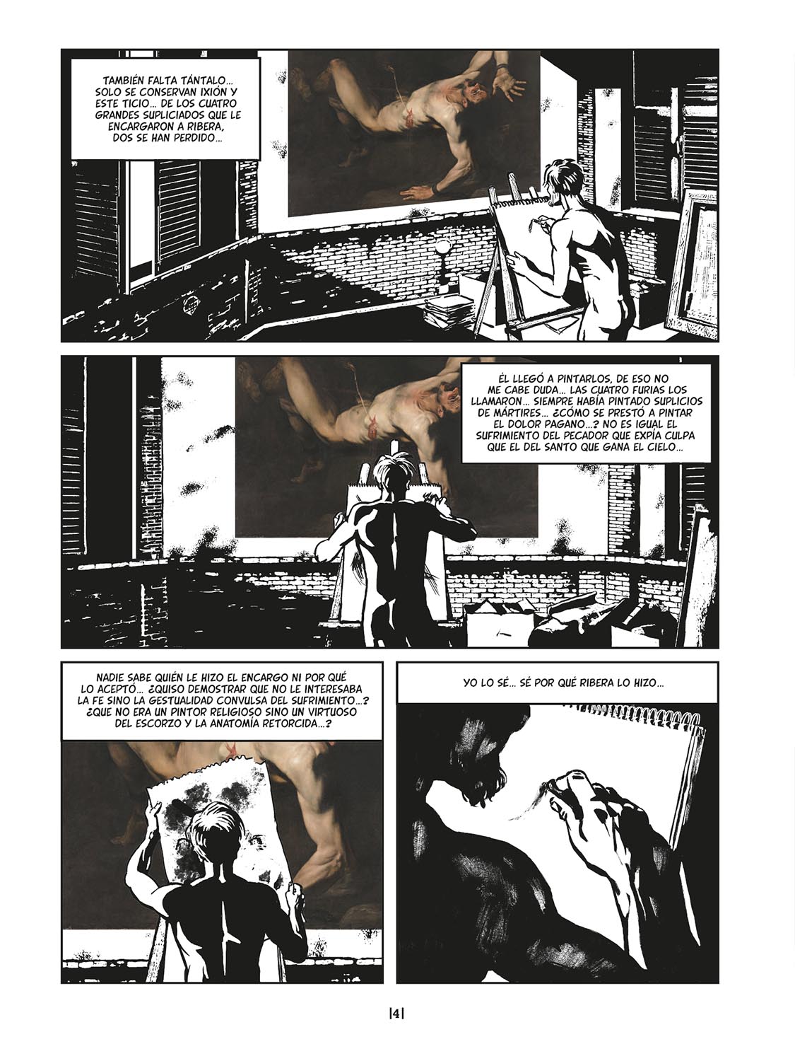 Osvaldo González Sanmartín es profesor de Historia del Arte en la Universidad de Salamanca. Pero su dedicación a la figura del pintor barroco José de Ribera se ha convertido en una obsesión que lo alejará progresivamente de las aulas para recluirlo en un torreón privado donde, a solas con la obra de su ídolo, se dedicará a recrear dos de las cuatro telas en las que “el Españoleto” plasmó el suplicio de cuatro gigantes de la mitología griega. La pintura lo sumirá poco a poco en un mundo de tinieblas donde la crueldad, la magia, la sangre y el crimen van de la mano.