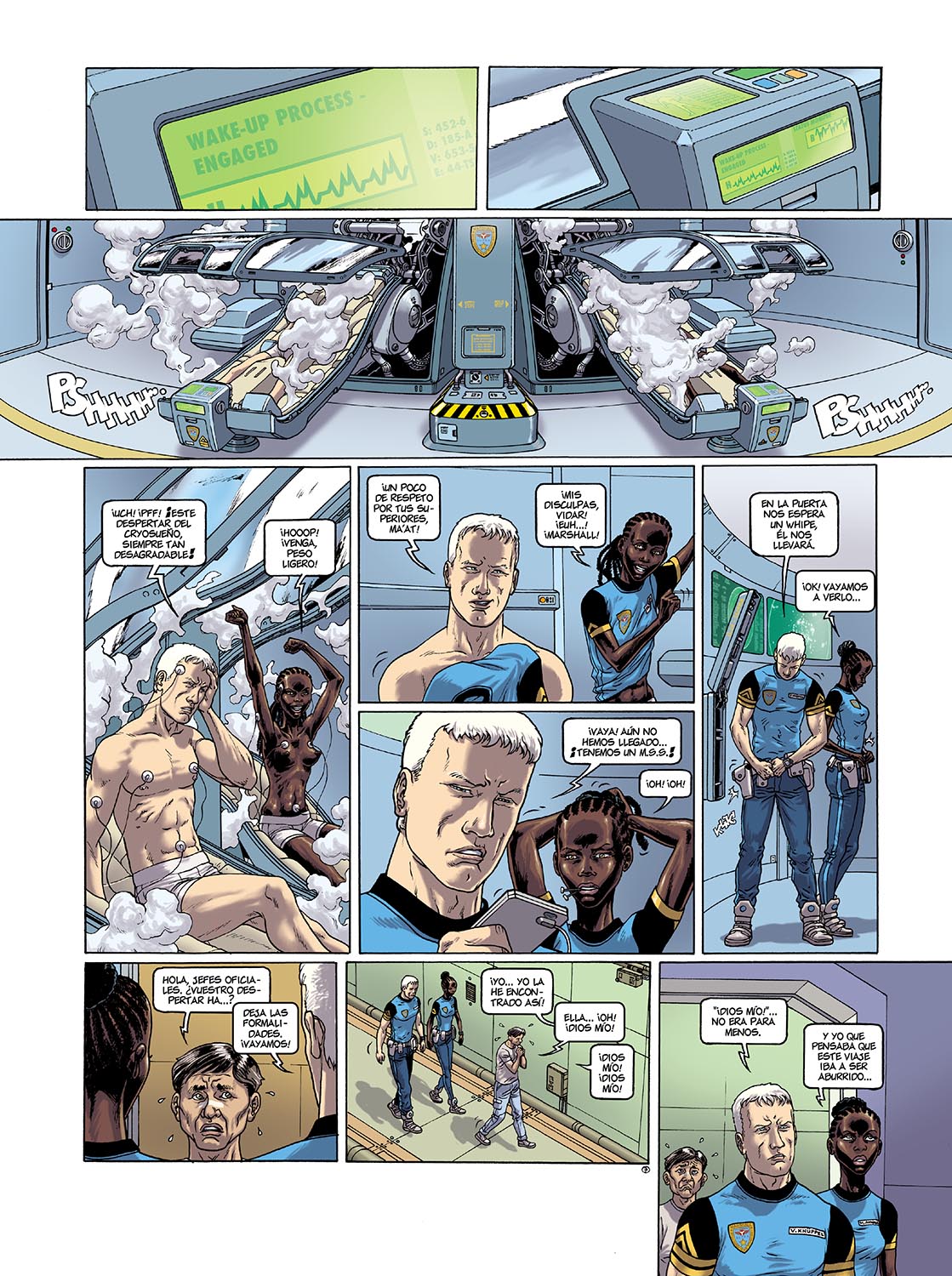 Y, sobre todo: ¿saldrá Nävis ilesa de esta brutal actualización? Nueva entrega de las aventuras de Nävis y el convoy espacial creado por Jean-David Morvan y Philippe Buchet.