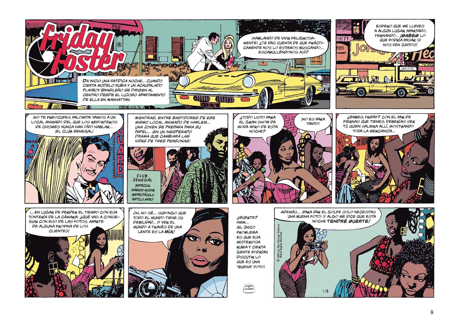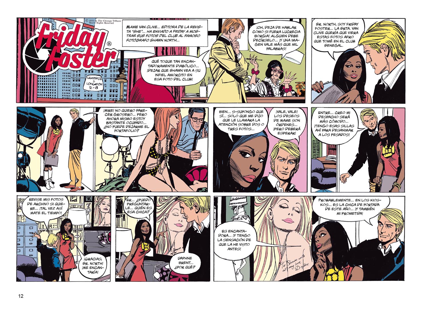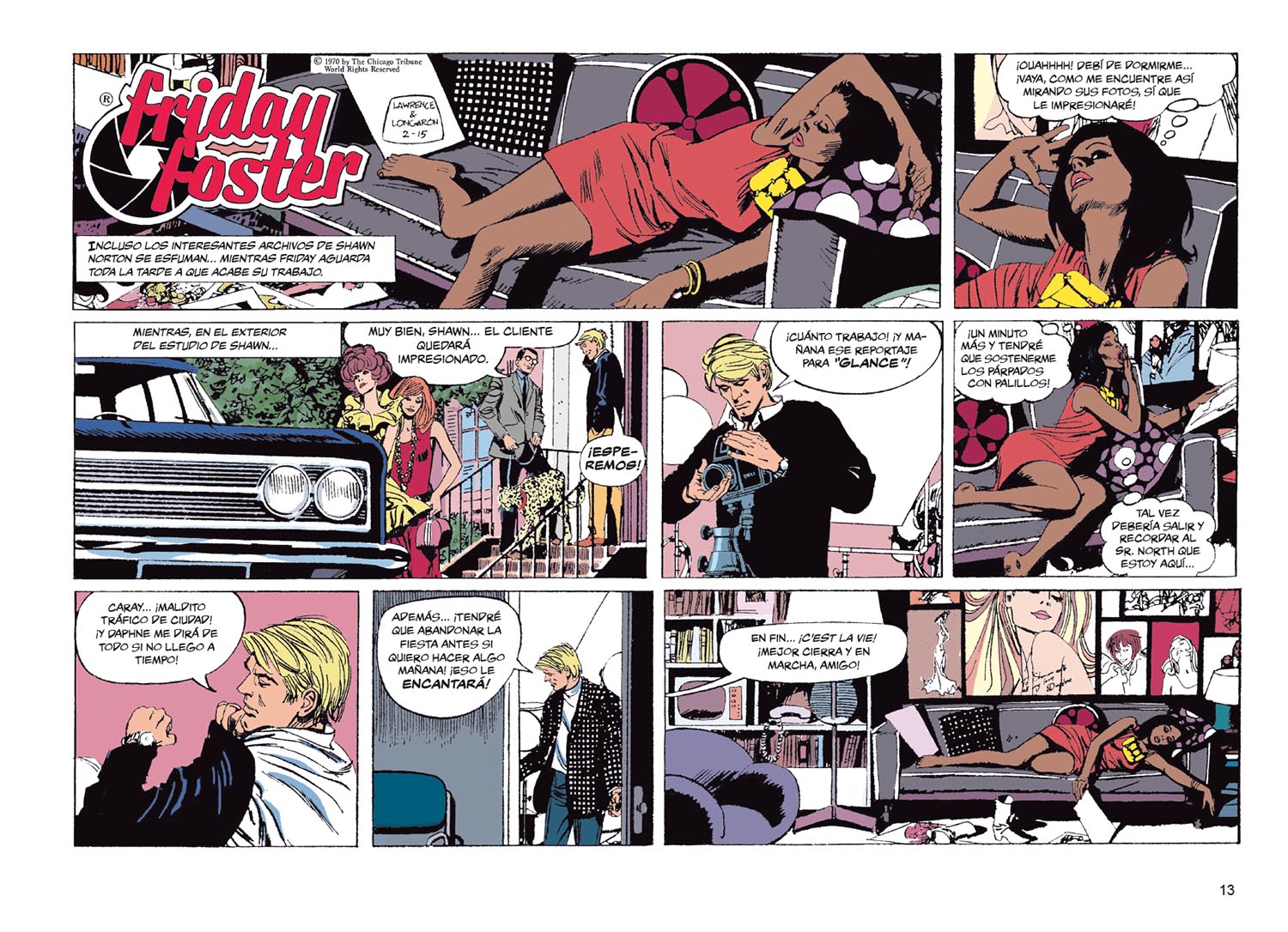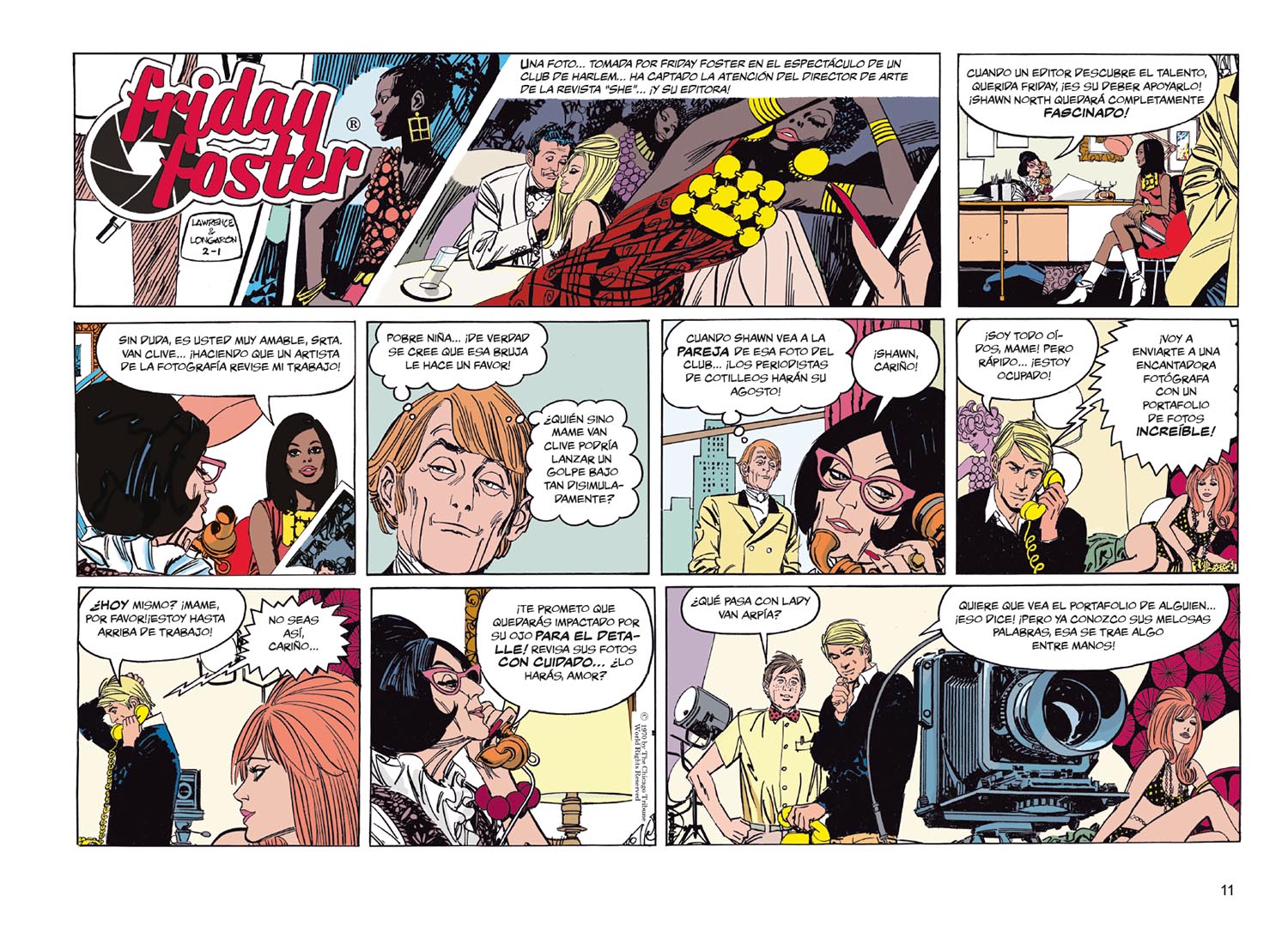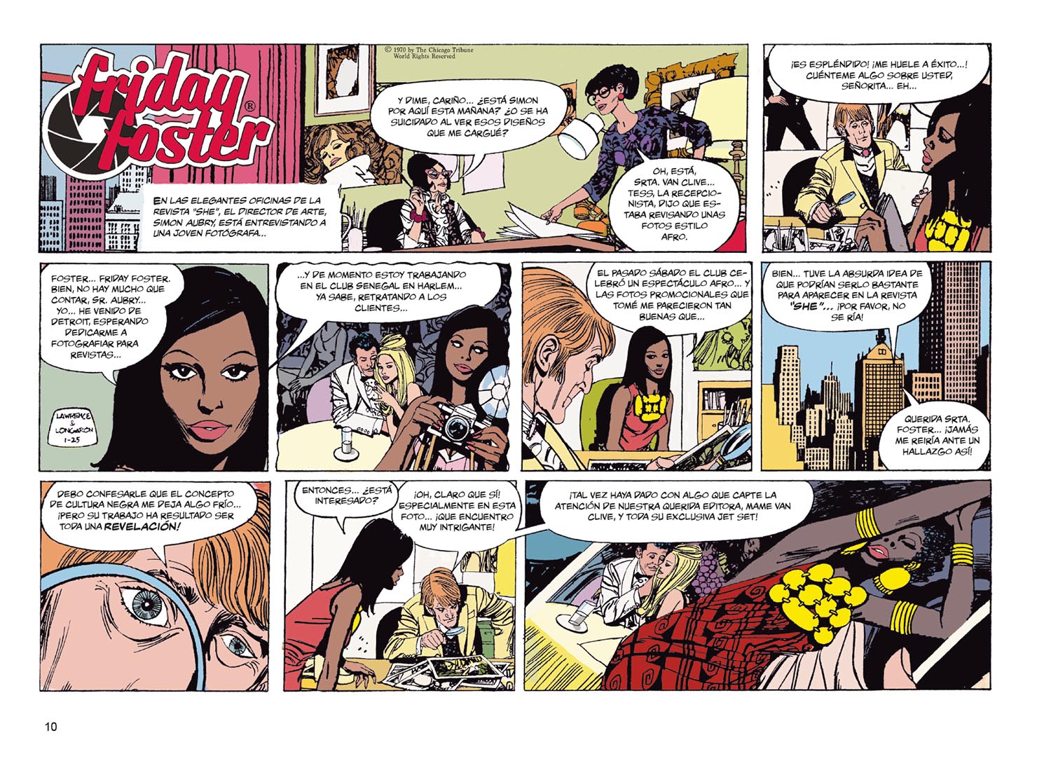 Bienvenidos al mundo de Friday Foster, la intrépida fotógrafa del barrio neoyorquino de Harlem que revolucionó las tiras de prensa estadounidenses a principios de los años 70. Aventura, romance, intriga y mucho glamur. ¿Quién dijo que la vida de las reporteras de moda era aburrida? Este personaje afroamericano, creado por el guionista Jim Lawrence y el dibujante Jordi Longarón, se convirtió en un icono del Black Power y contribuyó a romper los tabús raciales que se arrastraban desde hacía décadas en Estados Unidos.