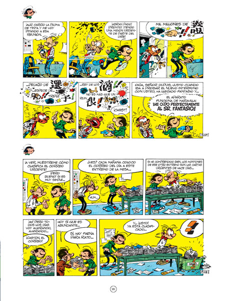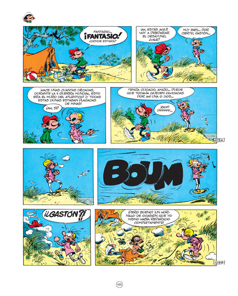 ¡GASTÓN SIGUE HACIENDO GAFERÍAS AL POR MAYOR! En 1957 Franquin le propone a Yvan Delporte, por entonces redactor jefe del semanario Spirou, la creación de un nuevo personaje, un «héroe sin ocupación» que no estará integrado en ninguna serie de la revista y que se dedicará a sabotear el trabajo de sus redactores y dibujantes. En el nº 985 de Spirou, fechado el 28 de febrero de 1957, aparece un extraño personaje que, a partir de entonces, irá pululando por diversas páginas del semanario sembrando el caos a su alrededor. Delporte lo bautiza como «Gastón» y no será hasta más adelante que Franquin lo apellide «Elgafe». Así, de la mano de uno de los mejores autores de cómic de la historia, nace uno de los personajes más carismáticos del cómic de humor de todos los tiempos. El presente tomo contiene las historias de la serie Gastón Elgafe realizadas entre 1964 y 1967, un periodo que corresponde a una etapa crucial en la carrera de André Franquin: cuenta entonces con dos décadas de trayectoria profesional y se ha consolidado como uno de los dibujantes estrella del semanario belga Spirou, gracias sobre todo a las aventuras de su personaje titular.