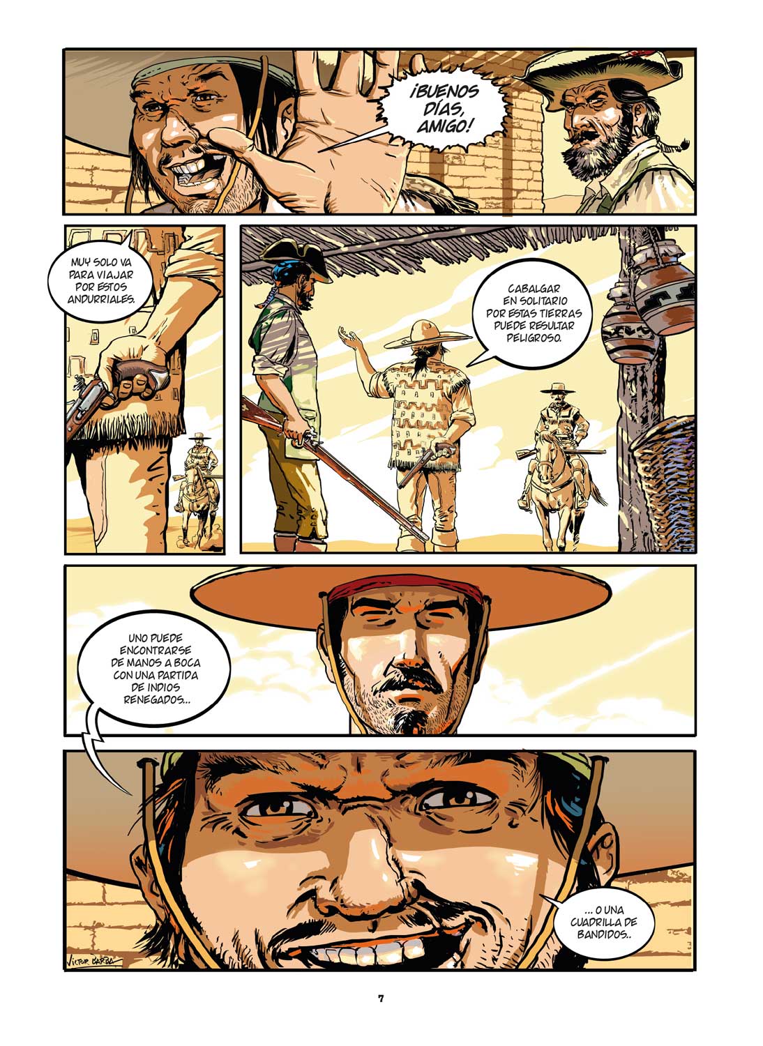 Víctor Barba(Hasta Nóvgorod) es un auténtico veterano de la historieta española actual, con una trayectoria impresionante que se remonta a mediados de los 70 y que llega hasta nuestros días. A través de este trabajo nos adentra en uno de los episodios menos recordados de la historia del Imperio español con este riguroso y documentado western.