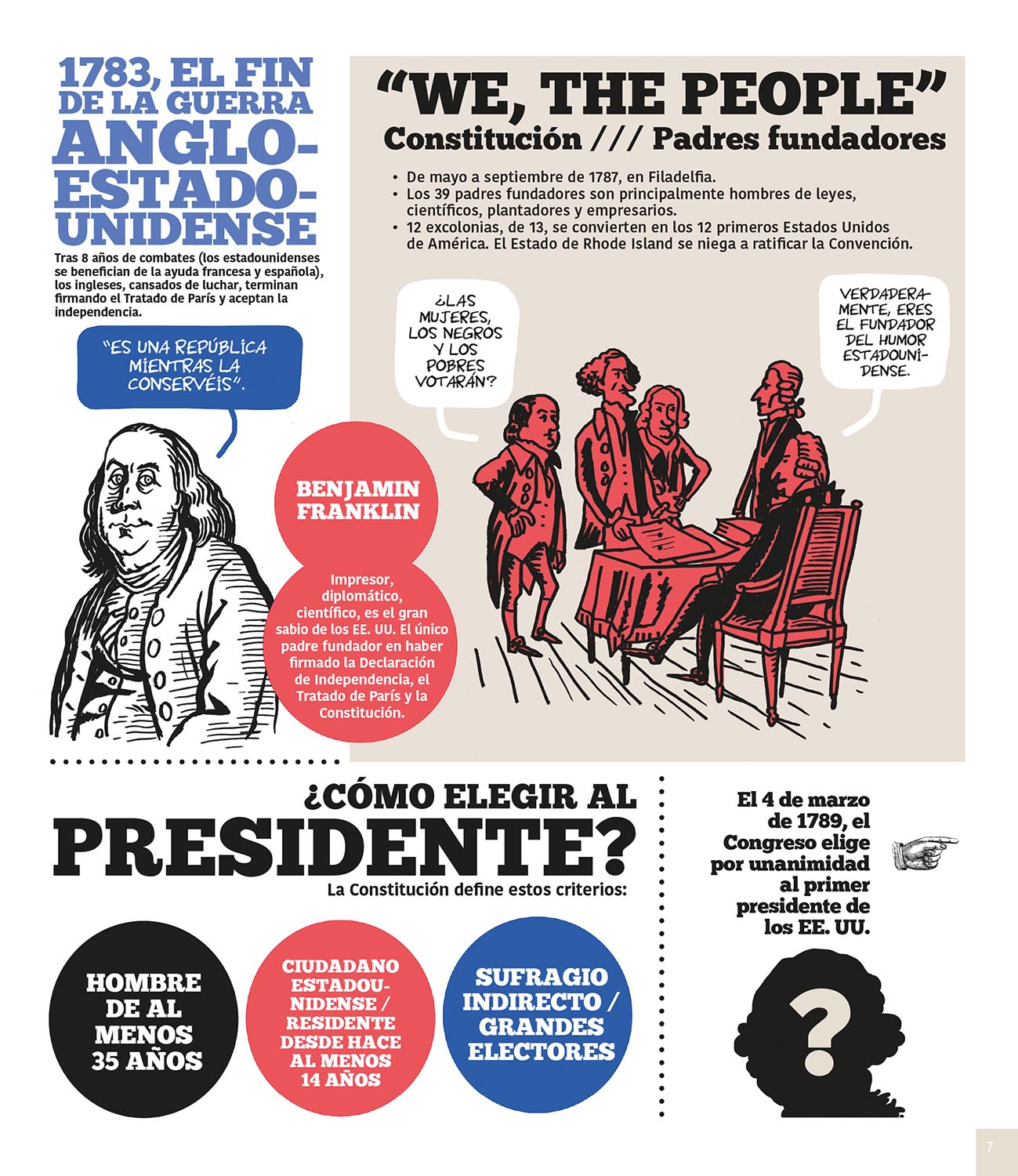 Maestro del cómic didáctico, Hervé Bourhis (El pequeño libro de los Beatles, El pequeño libro del rock) repasa la evolución de la democracia estadounidense a través de sus figuras más relevantes: los presidentes de gobierno.