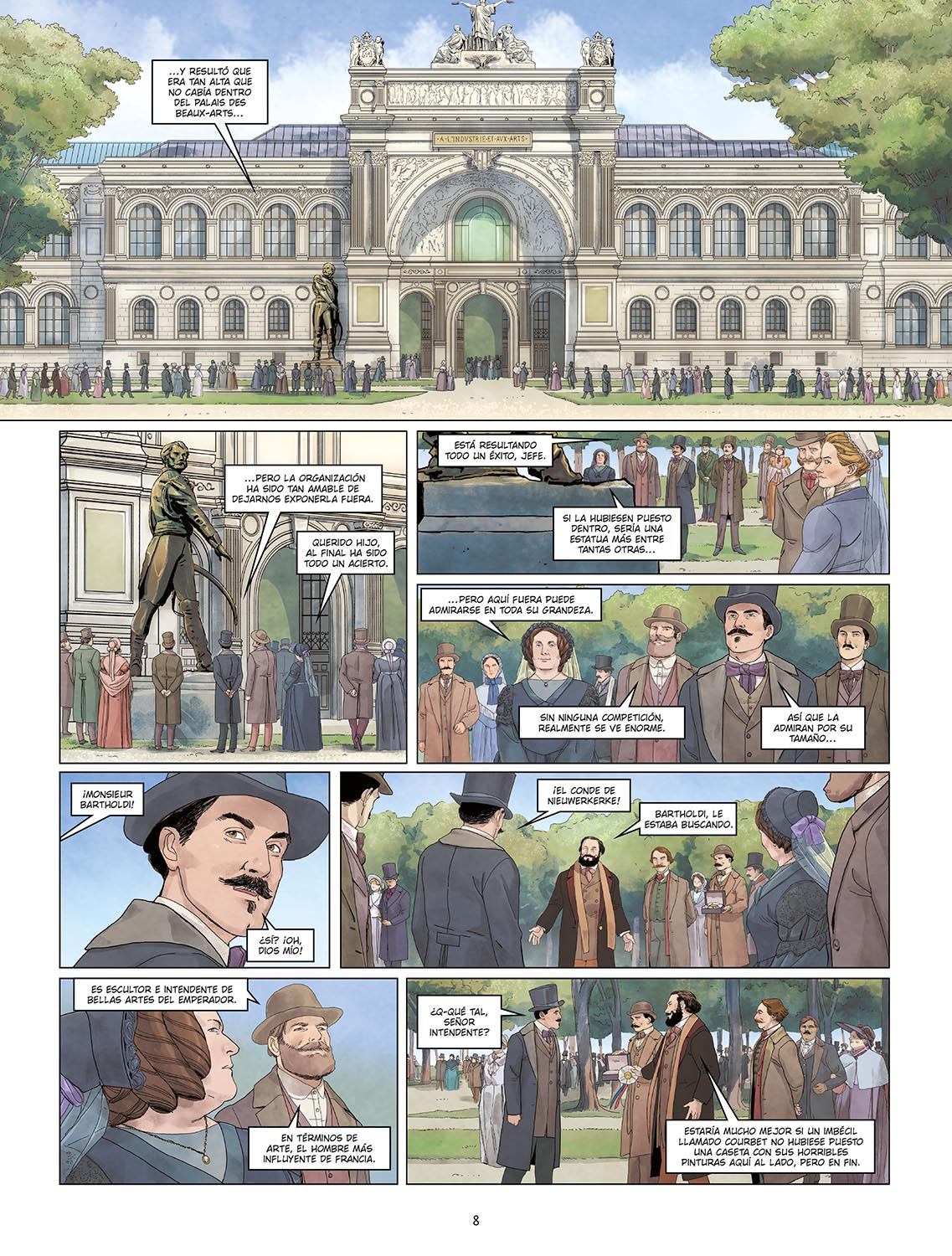 1855, Egipto. Un joven y desconocido escultor llamado Bartholdi cae rendido ante la grandeza de las estatuas gigantes de los faraones y se jura a sí mismo que algún día llevará a cabo una obra de ese tamaño. Pero no en vano, nadie en dos mil años ha realizado una estatua colosal. Bartholdi pronto se da cuenta de que debe encontrar un tema para su creación, un tema que le permita obtener el apoyo de miles de personas. ¿Qué otra cosa que el ansia de libertad puede unir a todos los ciudadanos del mundo?