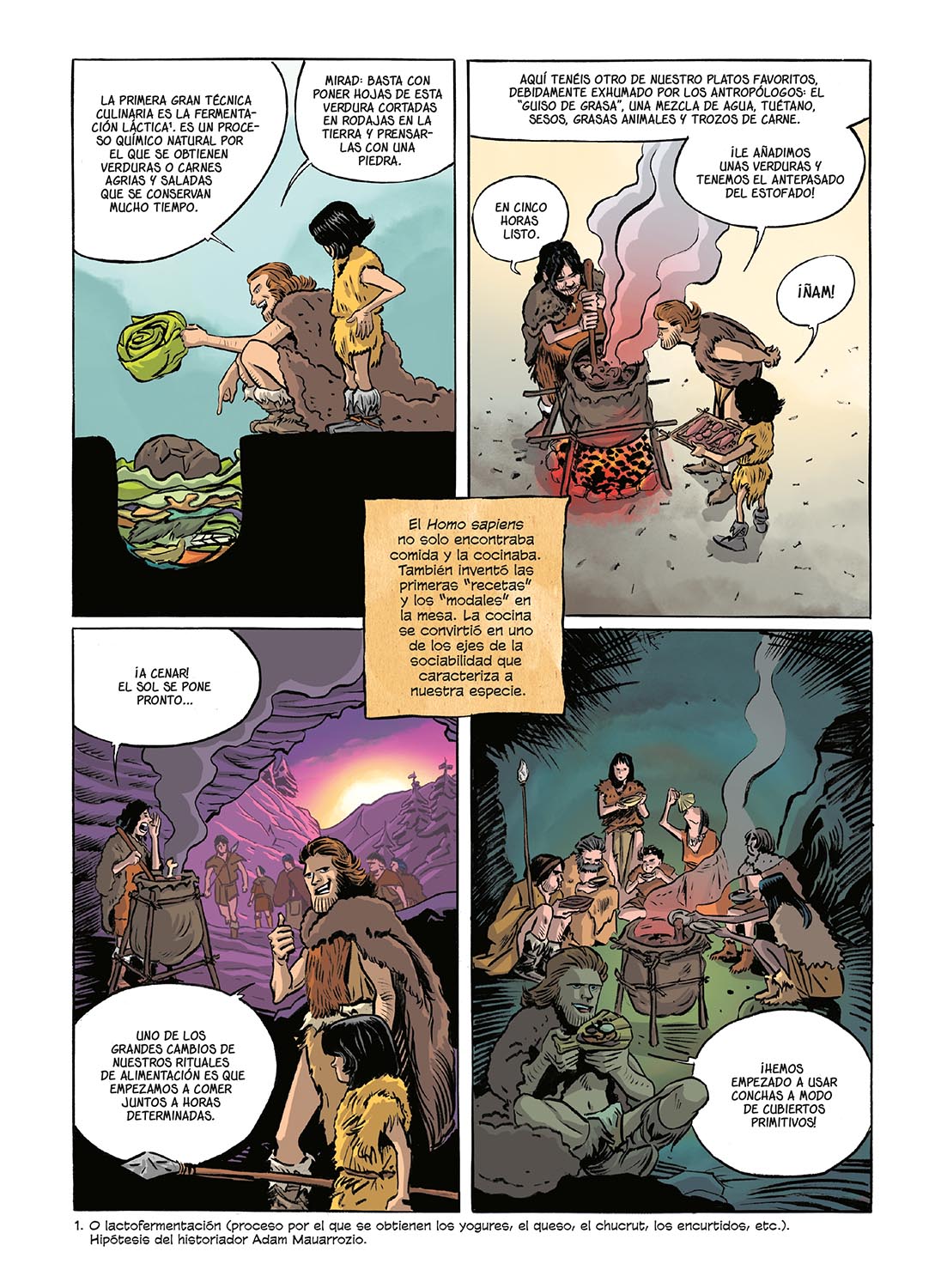 En el siglo XIX, con la Revolución Industrial, surge una cocina «capitalista»: son los comienzos de la industria agroalimentaria. En el siglo XXI, la revolución de los productos ecológicos y de proximidad es una respuesta a los efectos negativos de esa homogeneización culinaria y gastronómica. La historia de la humanidad va ligada a la evolución de la cocina, y este apasionante y divertido libro nos la muestra por primera vez en viñetas.