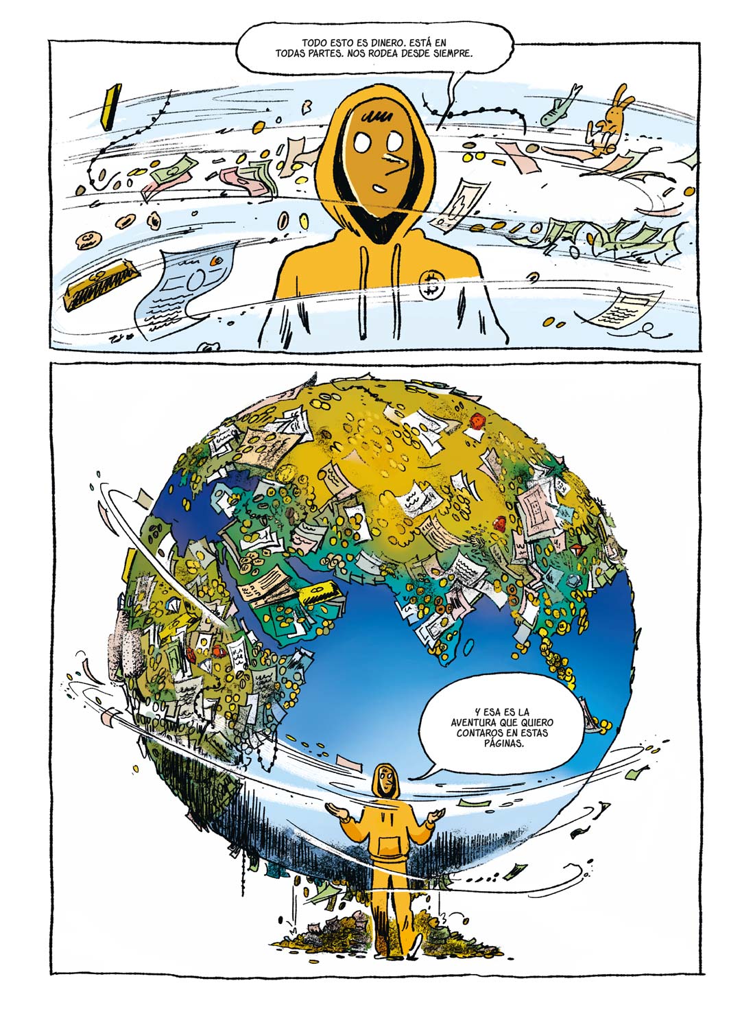 El guionista Benoist Simmat y el dibujante Tristan Garnier suman un nuevo título a la colección La increíble historia de… trazando una amplia panorámica de la evolución de los flujos monetarios desde la Prehistoria hasta la actualidad.