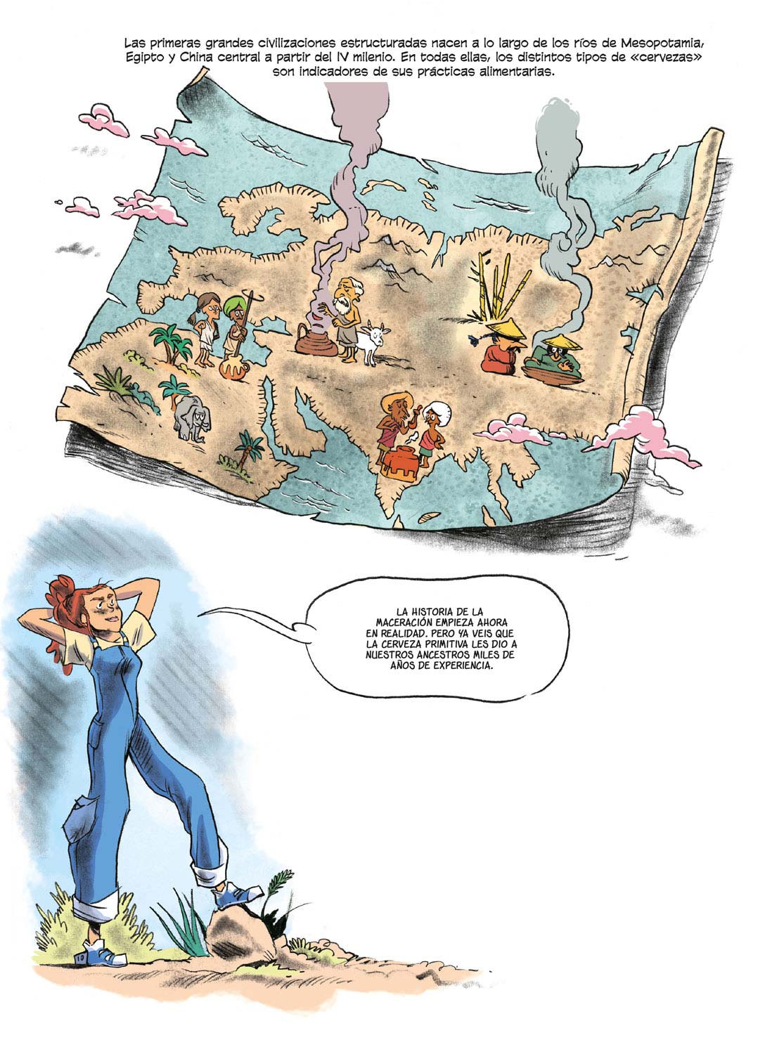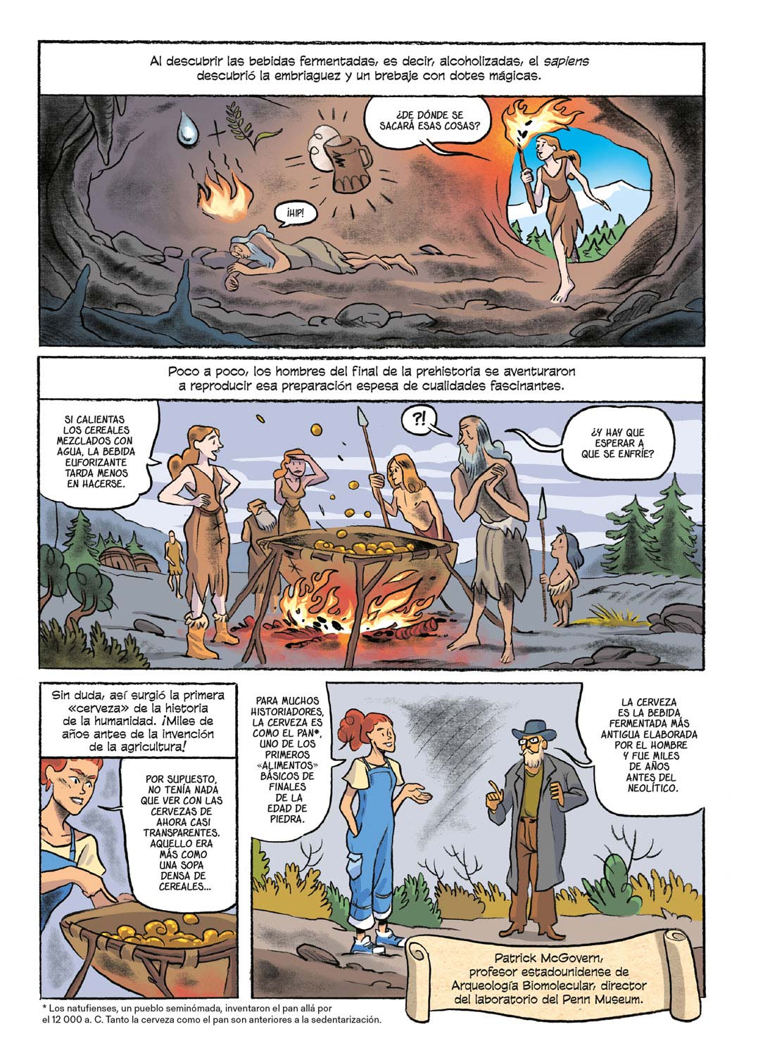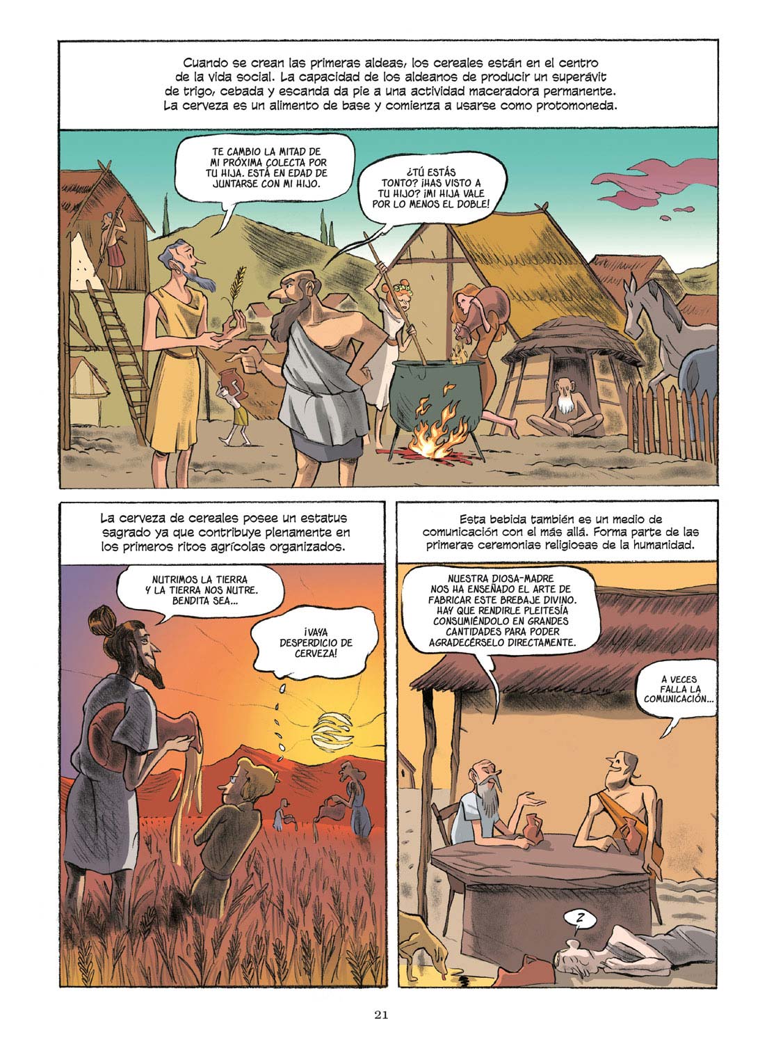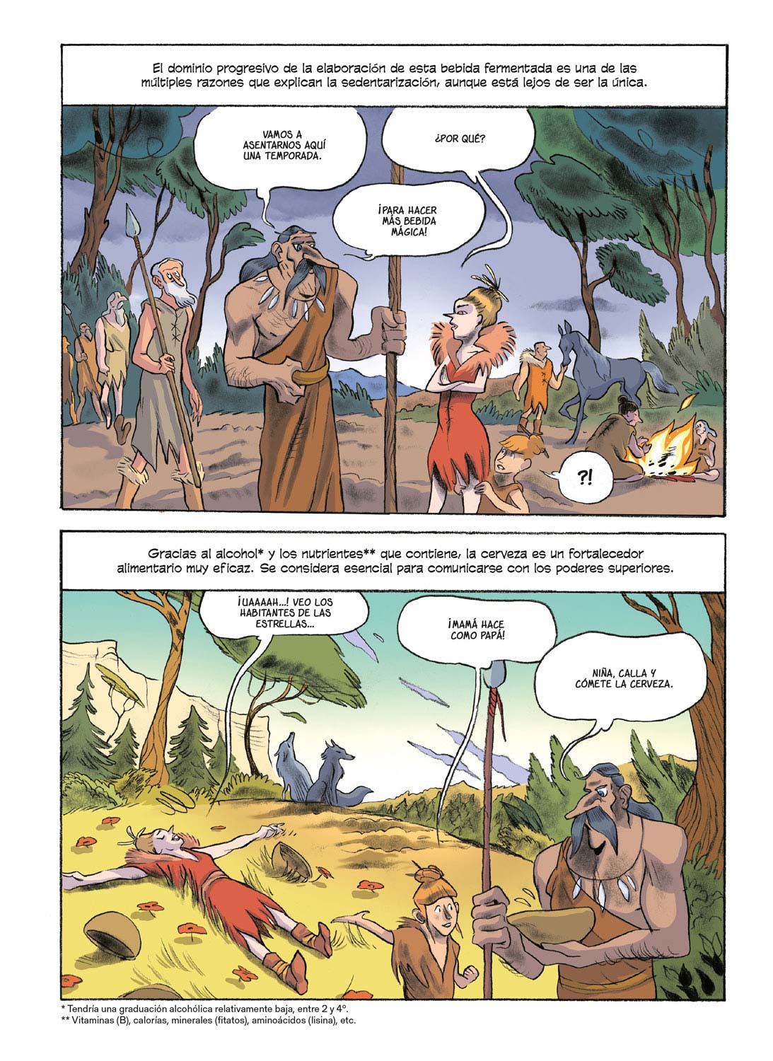 El guionista Benoist Simmat y el dibujante Lucas Landais unen fuerzas para contar la biografía de la cerveza desde aquella sopa densa de cereales de la Edad de Piedra hasta las cervezas artesanas de nuestros días en un cómic didáctico, refrescante y con mucho cuerpo.