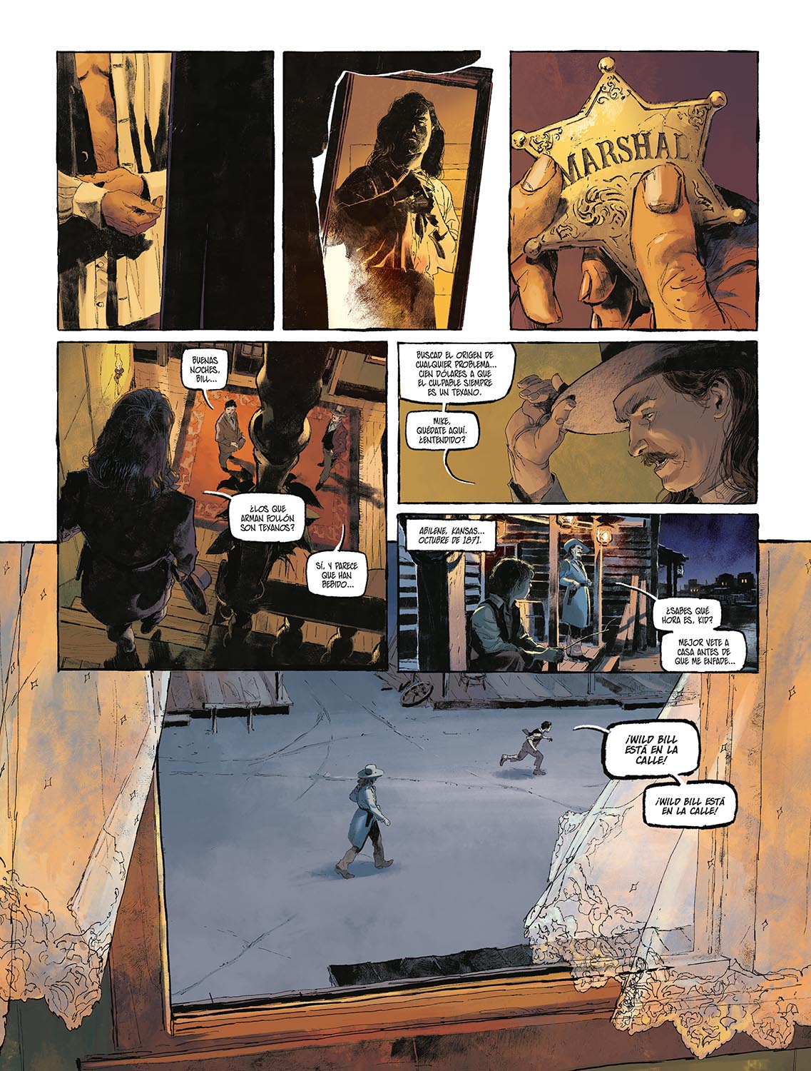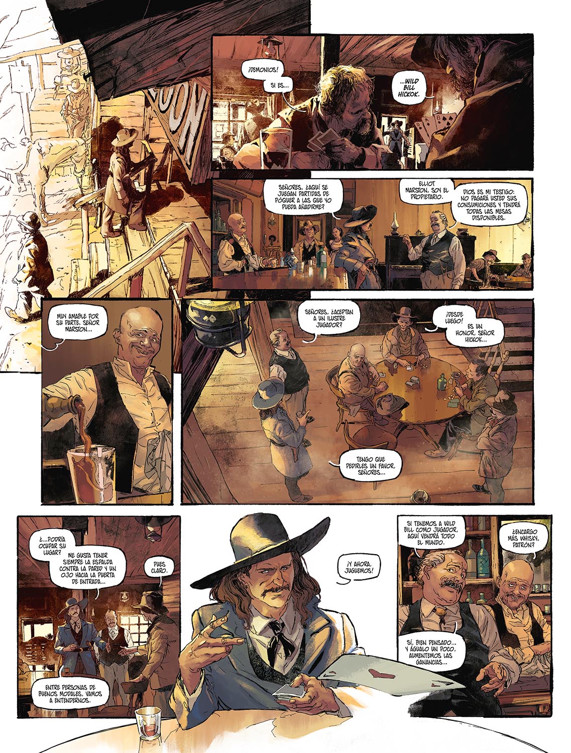 Lo llamaban Wild Bill. En realidad, se llamaba James Butler Hickok, un dandi de estilo llamativo considerado el mejor tirador del Oeste, y que despertaba tanto admiración como miedo. Sin proyectos ni dinero, su habilidad con las armas de fuego y su fuerte carácter le valieron representar a la ley en los territorios más salvajes del Oeste. Su fama lo llevó incluso a actuar en escenarios teatrales, representando sus propias aventuras, reales o imaginadas. Melancólico y atormentado por sus viejos demonios, su destino lo condujo a través de las grandes praderas hasta Deadwood…
