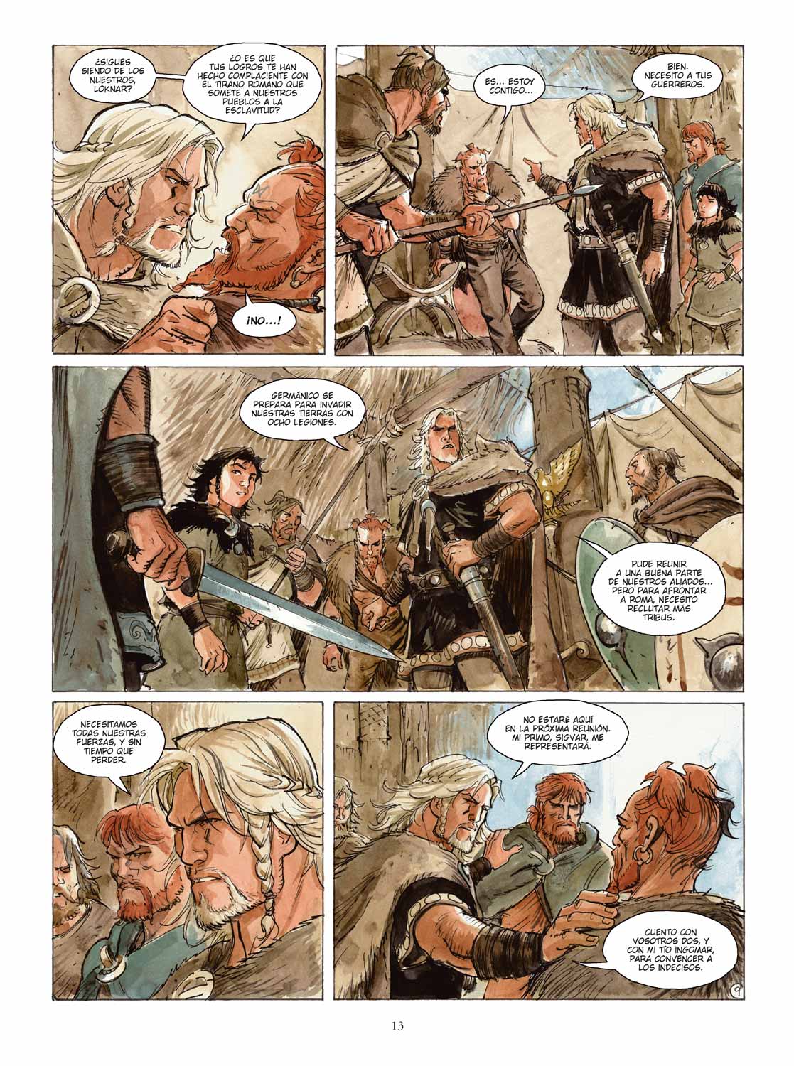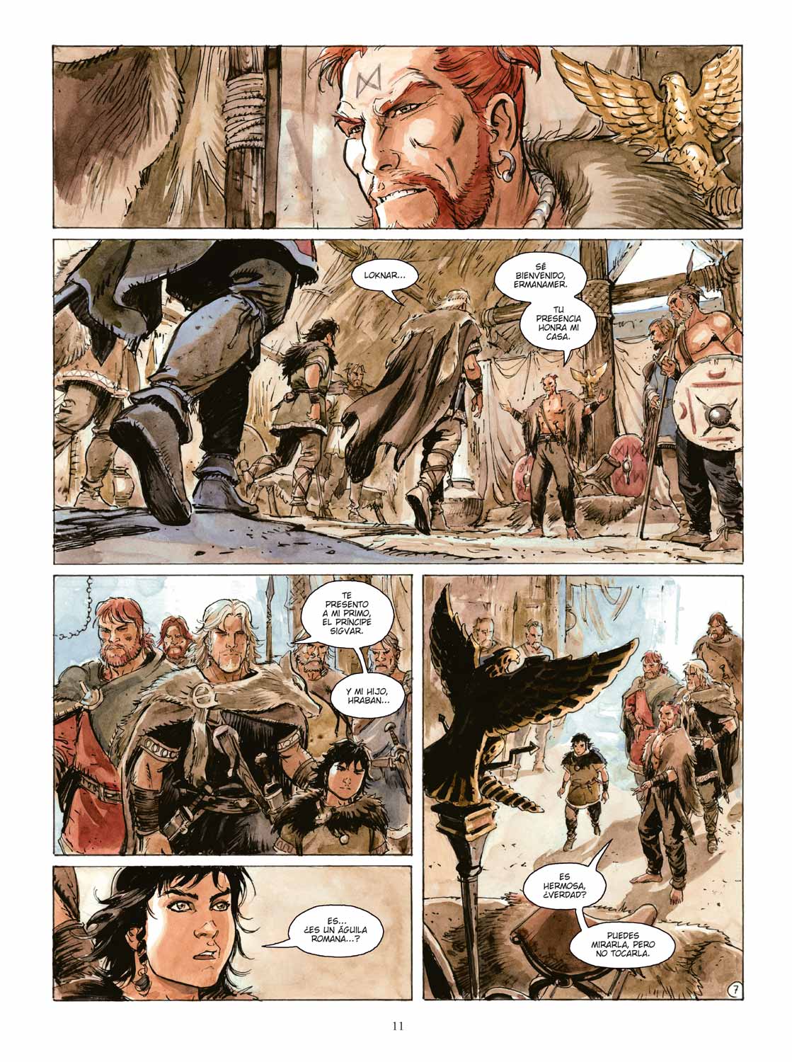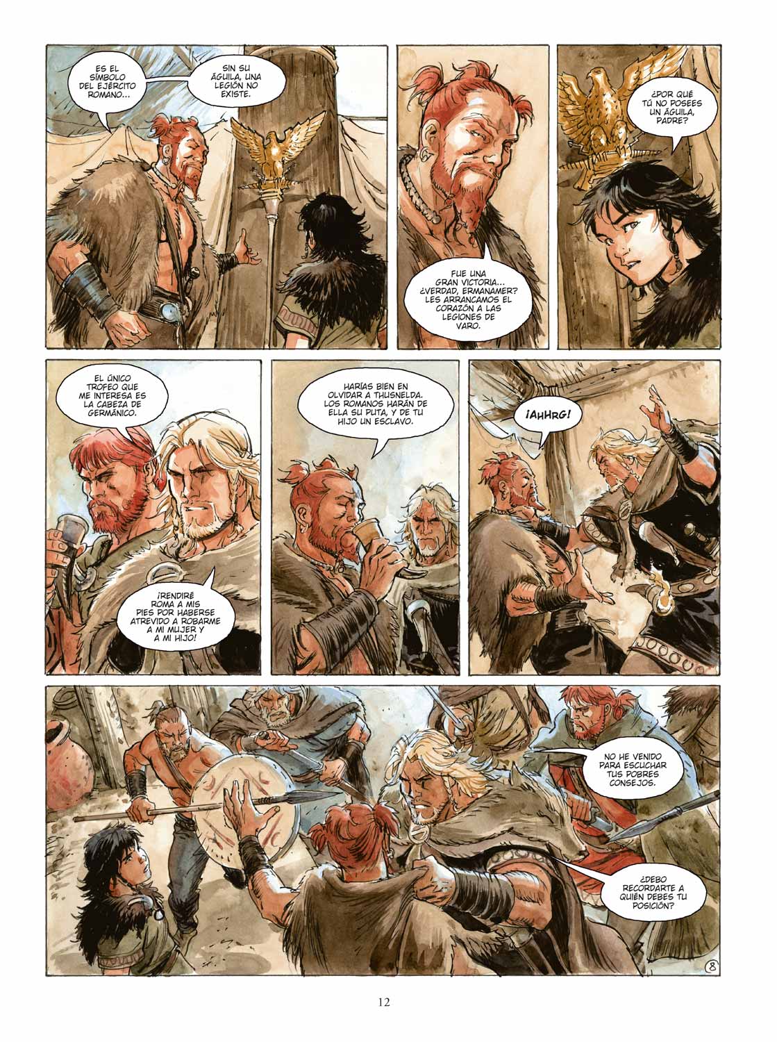 El genial Enrico Marini (Noir burlesque, Rapaces) regresa con una nueva entrega del mejor péplum del mundo del cómic. Falco asume una doble tarea: por un lado, proteger la vida de Thusnelda, esposa de Arminio, ahora prisionera del emperador Germánico; de otro lado, emprender una campaña militar en Germania para someter a las tribus bárbaras y recuperar al fin las águilas perdidas de las legiones romanas.