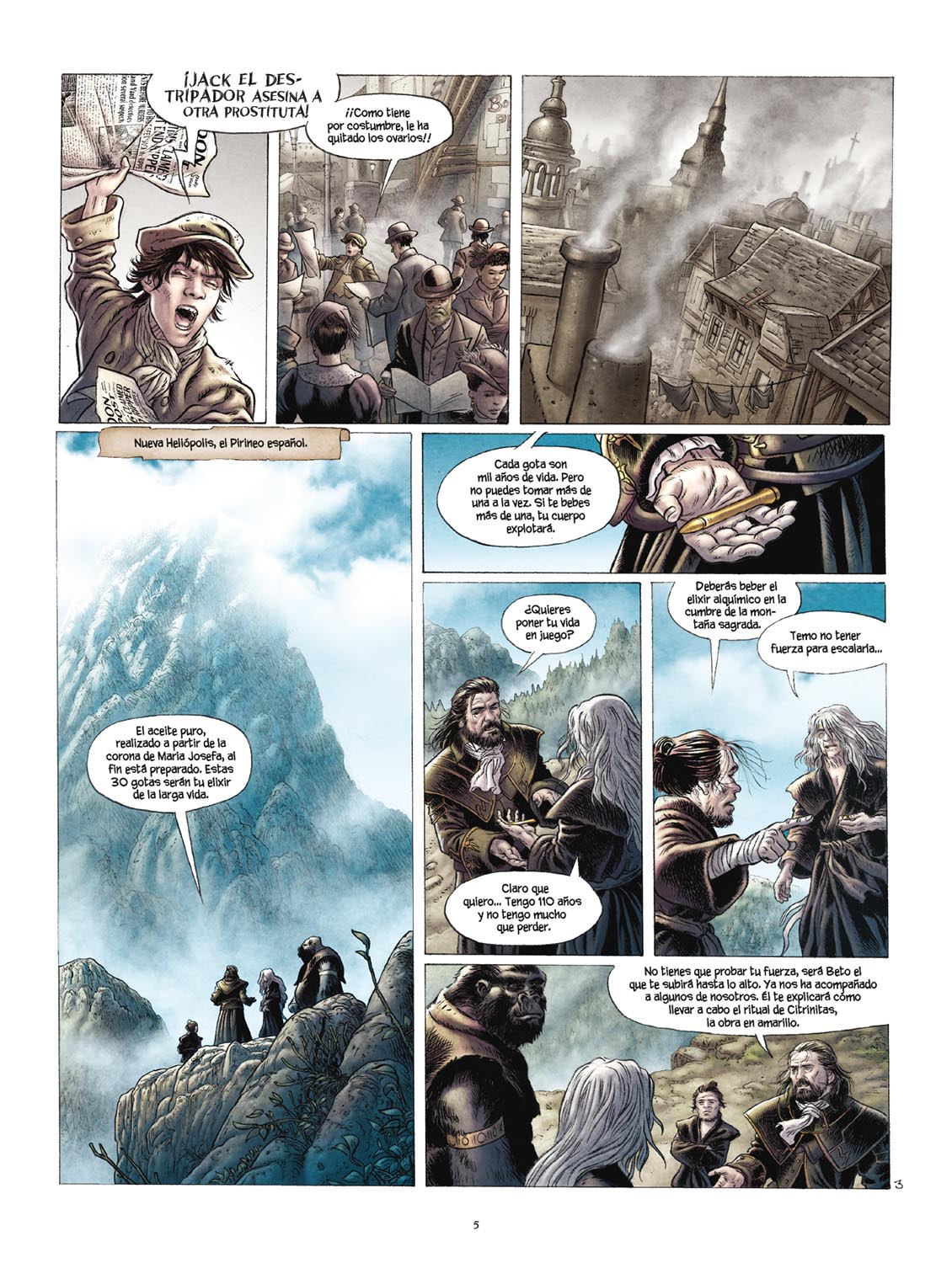 En el refugio de los Caballeros de Heliópolis, Asiamar, de ciento diez años, se prepara para realizar el último ritual de su iniciación: el Citrinitas, el trabajo en amarillo, que le permitirá recuperar su juventud y vivir mil años. Ha llegado el momento de que conozca el secreto de los Caballeros, guardado celosamente por su maestro, que necesita del poder de todos sus discípulos para salvar a la humanidad. Pero antes, encarga a Asiamar una misión: enfrentarse a la última gran amenaza de la Orden. Un mutante asesino de mujeres que vaga por las brumosas noches de Londres, la capital del mundo moderno: ¡Jack el Destripador! Jodorowsky y Jérémy concluyen de forma apoteósica su gran saga esotérica, un fresco épico que mezcla los secretos de la alquimia y los de la historia arcana.