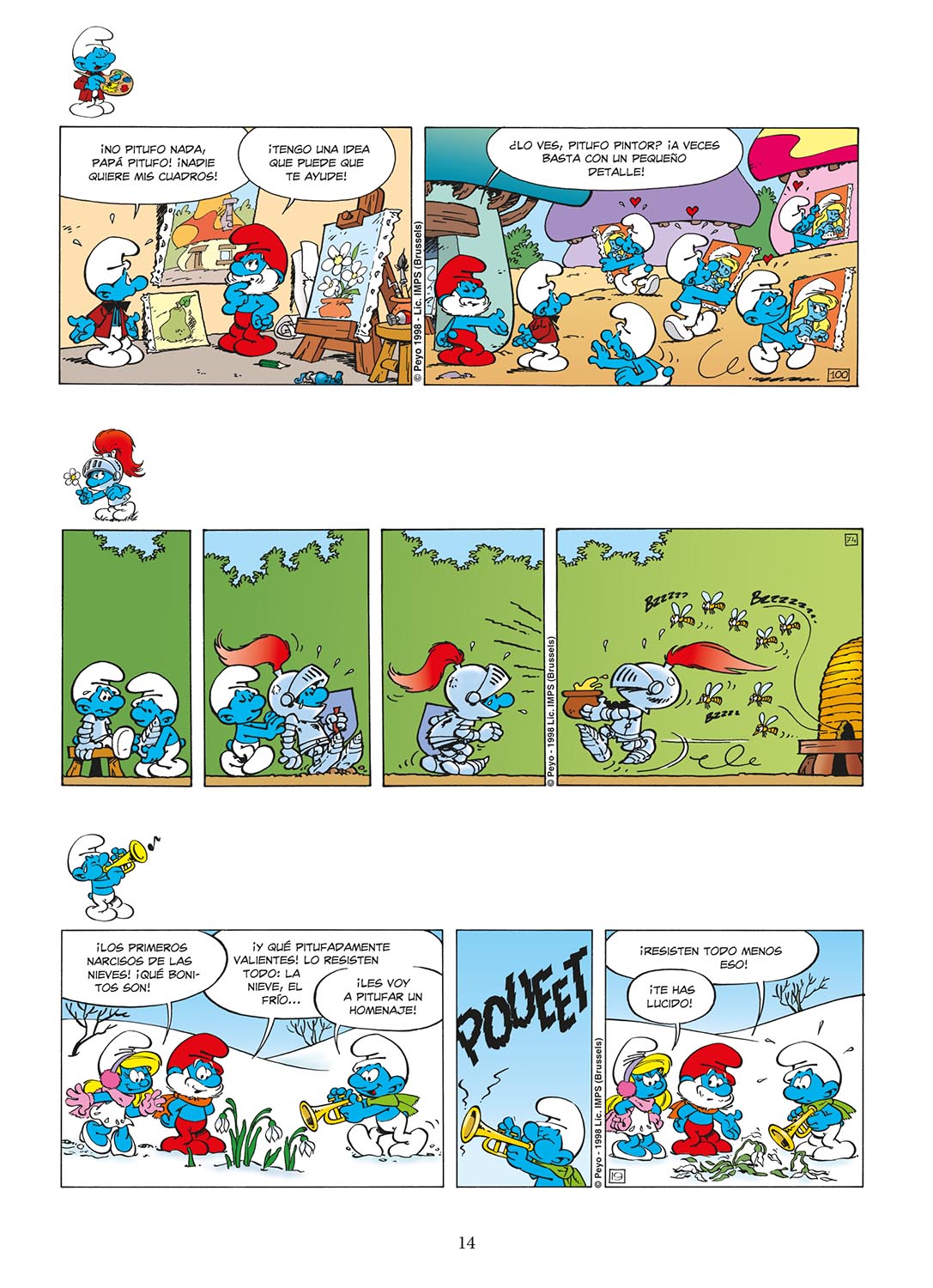 Los Pitufos, unos duendecillos azules dotados de un encanto extraordinario, hacen su primera aparición en la revista Spirou en 1958, en un episodio de Johan y Pirluit, la serie del dibujante belga Pierre Culliford, conocido como «Peyo». El éxito es tan fulgurante que empiezan a protagonizar sus propias historias y, en muy poco tiempo, se convierten en un mito del cómic que deleitará a generaciones de lectores.