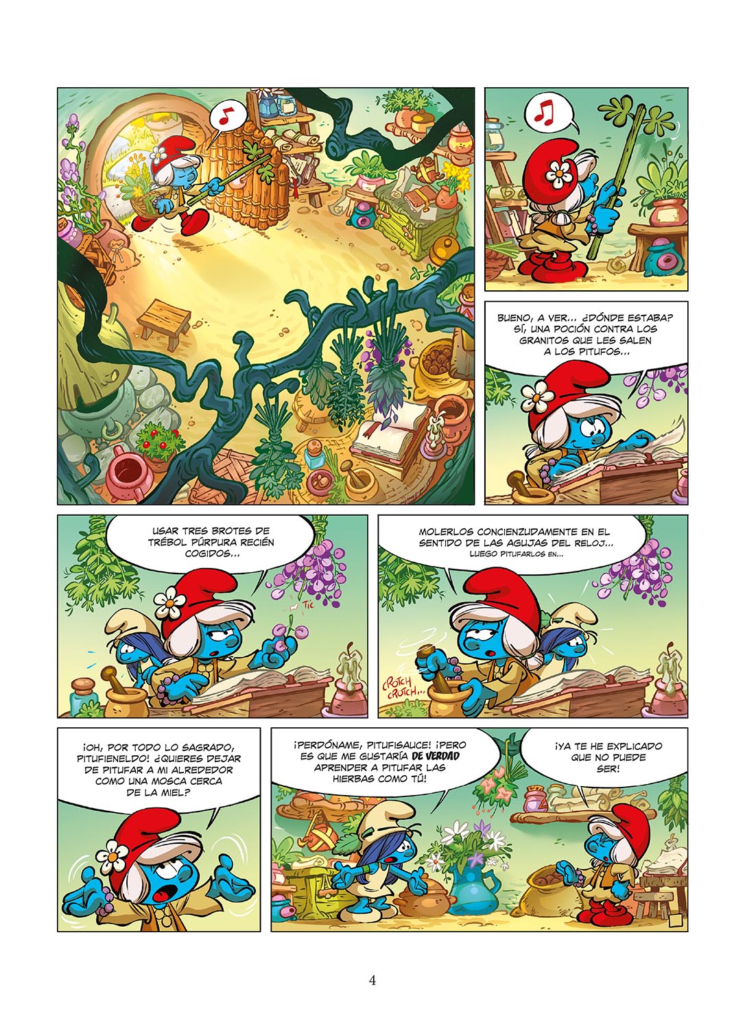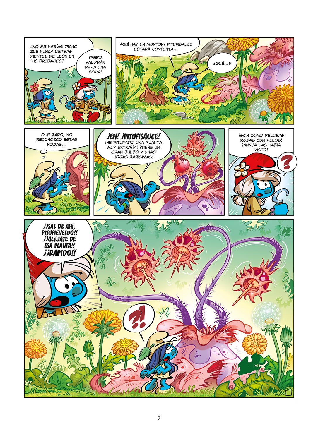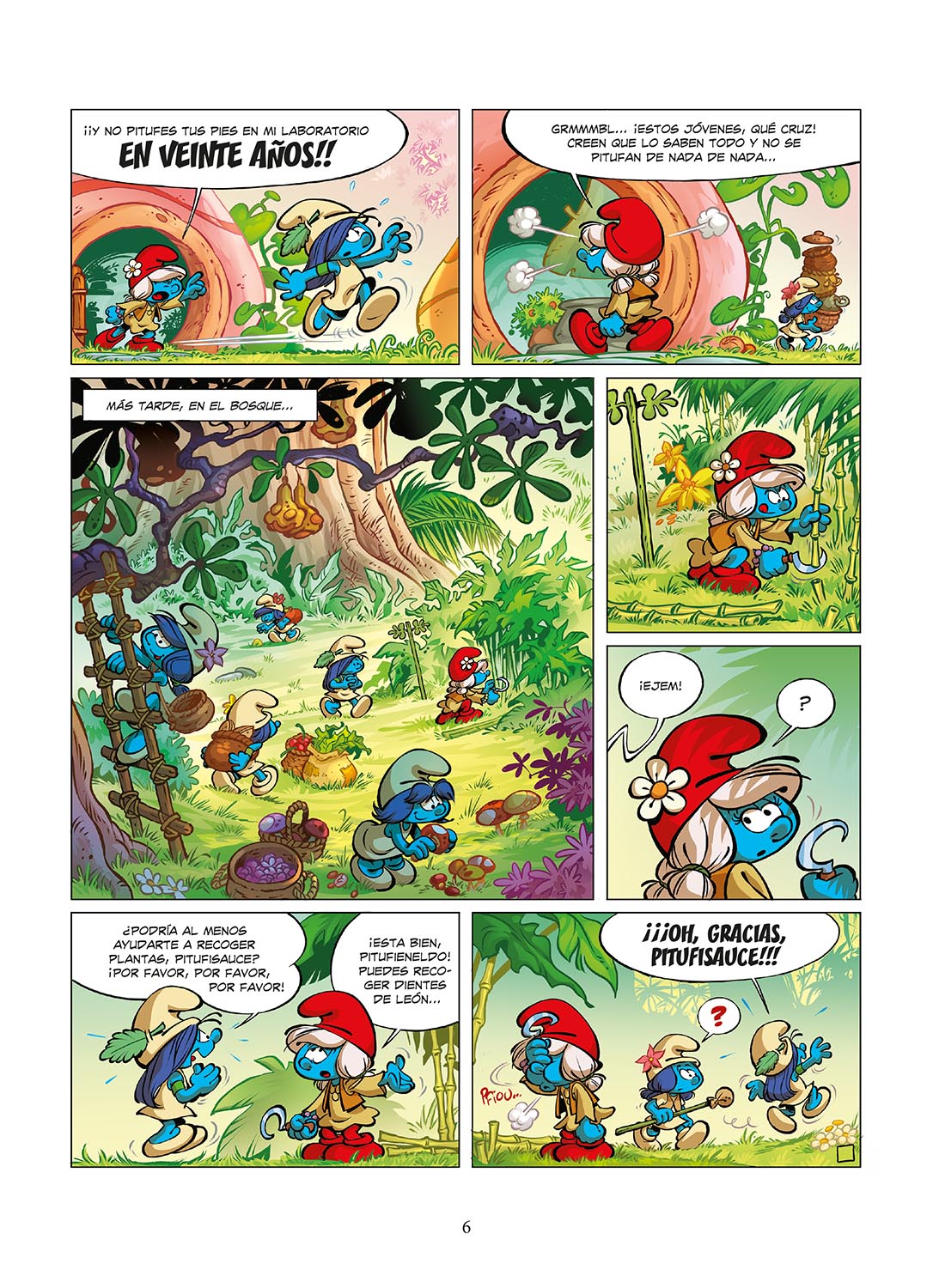 Todo empieza el día en que Pitufisauce recibe el pinchazo de una extraña planta venenosa. El veneno se extiende con rapidez y el único antídoto conocido es un bastón mágico bañado en la fuente del País de las Piedras Pitufantes. El tiempo apremia. A toda prisa las pitufas organizarán una expedición formada por Pitufieneldo, Pitufirretoño y Pitufitormenta. Tendrán que apurarse si quieren llegar a tiempo en esta emocionante y divertida aventura escrita por Luc Parthoens y Thierry Culliford, y dibujada por Laurent Cagniat.
