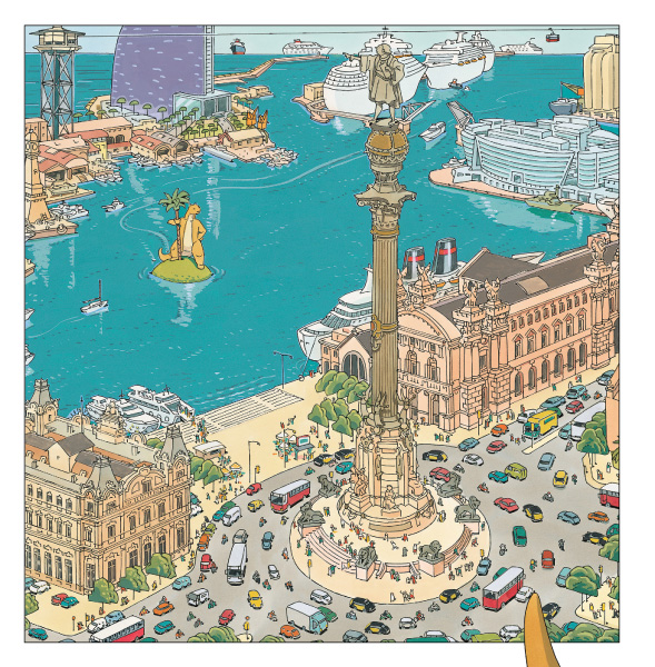 Després de viatjar per tot el món, TOM arriba a Barcelona amb la seva illa flotant. Allà passejarà per Les Rambles, acabarà amb les existències de la Boqueria, dormirà al damunt de la Torre Agbar i somiarà amb la Barcelona dels mil colors. Un recorregut per les meravelles de la Ciutat Comtal amb l´art d´un dels grans autors del nostre còmic.