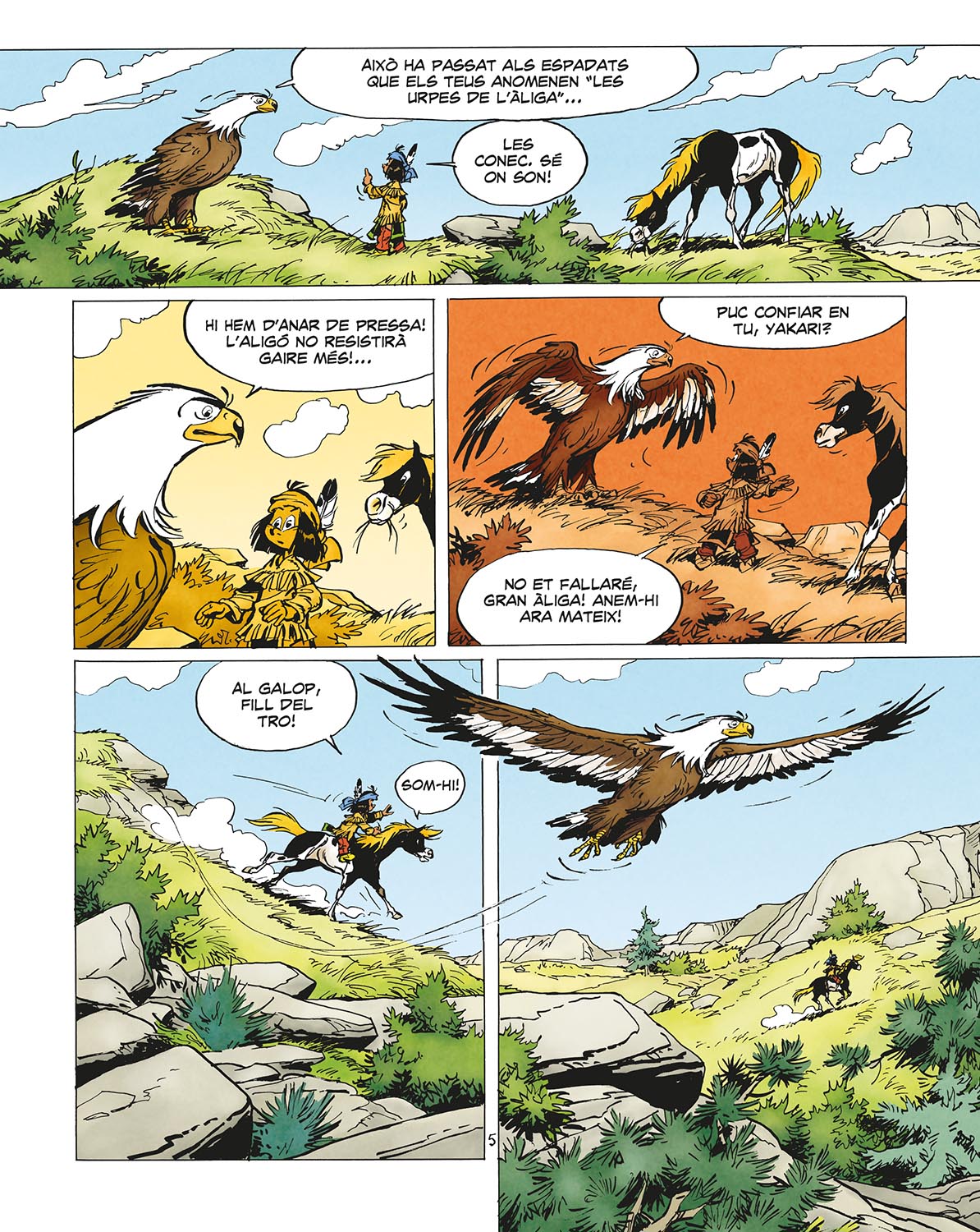 Yakari, el jove sioux capaç de parlar amb els animals, creat per Derib i Job, continua delectant a grans i petits amb un nou lliurament de les seves peripècies. El còmic ideal per als més petits, replet d'aventures i diversió que, a més, els ensenyarà a respectar el medi ambient. En aquestes dues noves històries Yakari haurà de rescatar a una cria d'àguila ferida i ajudar al seu amic Llavor de Bisó a trobar al seu esperit guia.
