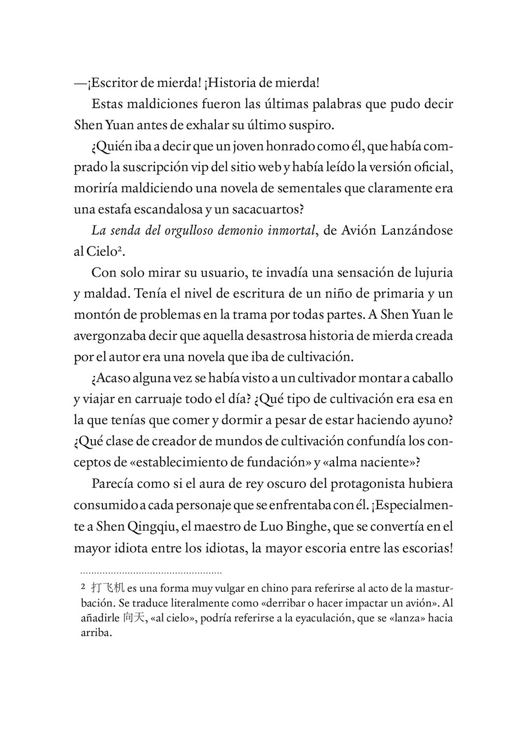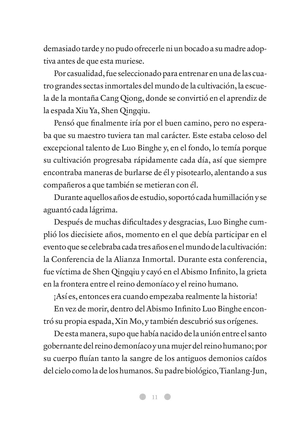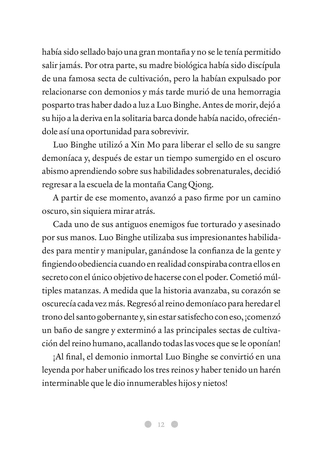Shen Yuan muere de un ataque de rabia al acabar el último capítulo de La senda del orgulloso demonio inmortal. Pero entonces despierta en el mundo de la novela, en el cuerpo del villano Shen Qingqiu, el hermoso pero cruel profesor del protagonista de la obra, Luo Binghe. Peor aún: el destino de Shen Qingqiu es ser castigado de la forma más terrible por el protagonista. Ahora, la única posibilidad que tiene para sobrevivir es intentar ganarse el aprecio de Luo Binghe…