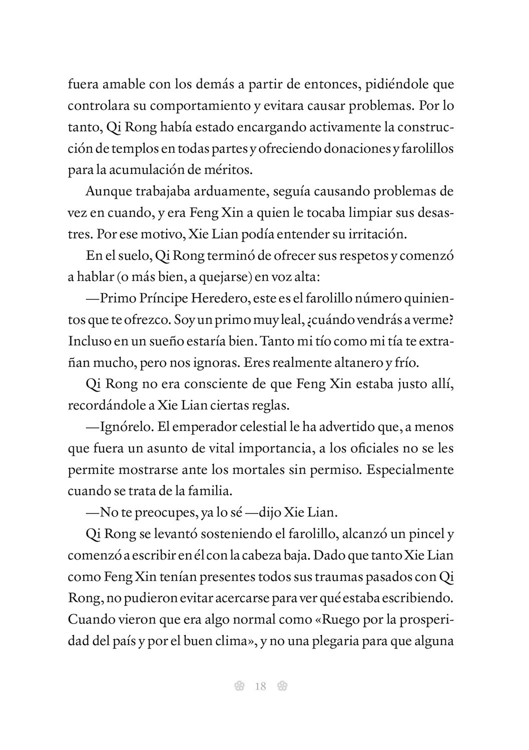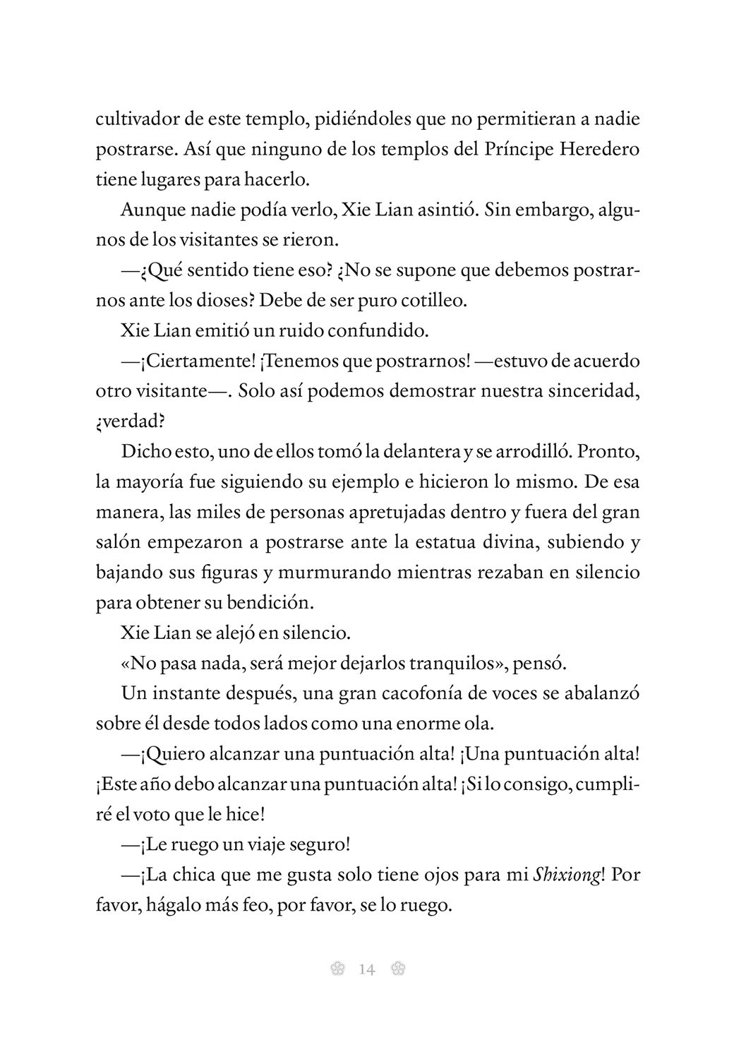 Sin embargo, pronto descubrirá que ni siquiera un inmortal como él tiene el poder suficiente como para salvar a toda una nación. Afortunadamente, Xie Lian no está solo: su pequeño ejército de oficiales del cielo y fantasmas del pasado le demostrarán una lealtad que el Príncipe Heredero nunca hubiese imaginado. y contar con la ayuda del mismísimo Rey Fantasma tampoco le vendrá nada mal, aunque sus sentimientos por él podrían distraerle de su auténtica misión.