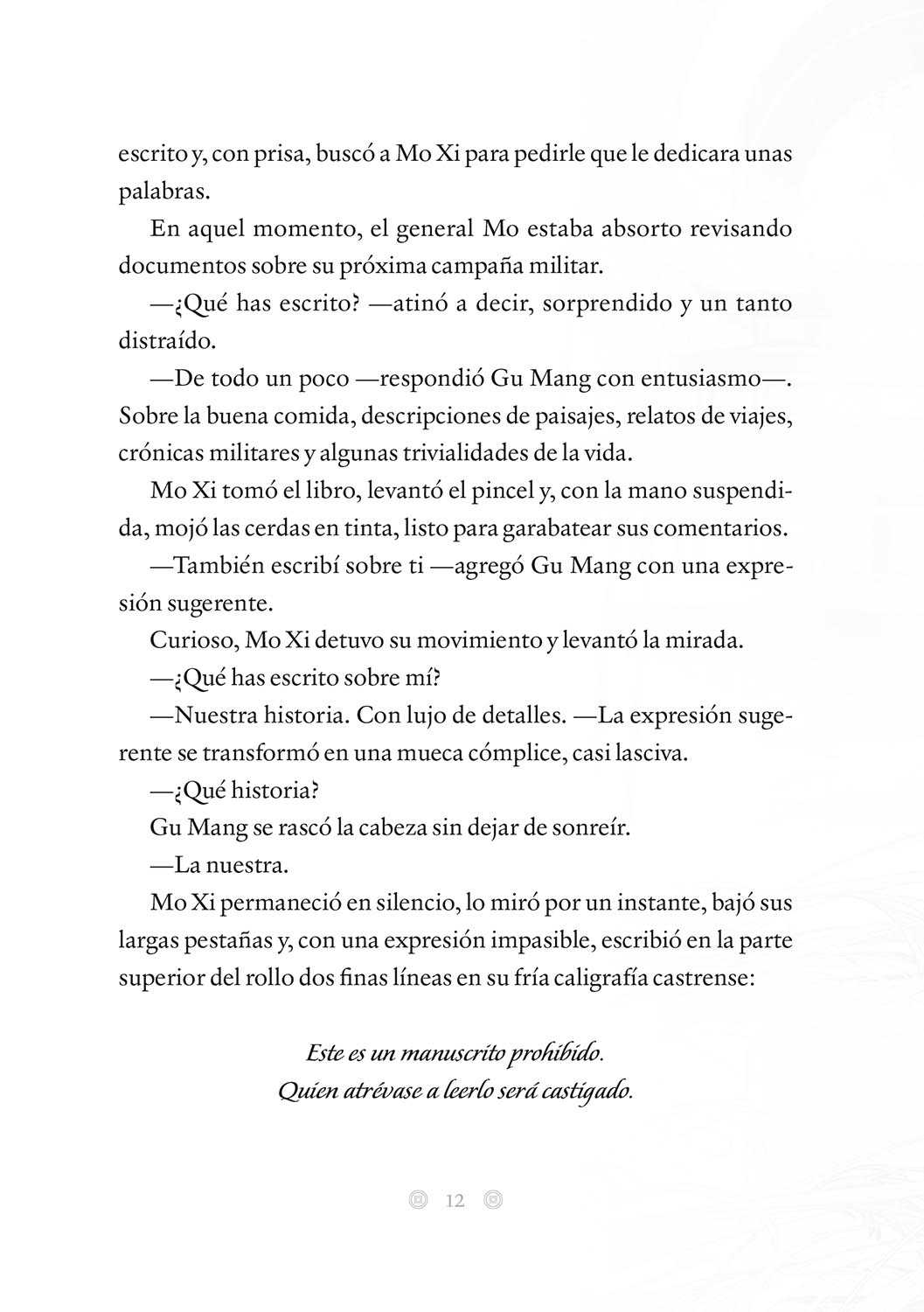 Años después, el enemigo lo devuelve como una sombra de lo que fue, un genio militar reducido a sus despojos. Nadie ansía más la venganza que Mo Xi… o al menos eso creía. Al reencontrarse con Gu Mang, le surgen más preguntas que respuestas. ¿Por qué lo abandonó el hombre que más amaba? ¿Qué se oculta tras su traición y esa mirada atormentada?¿Qué le deparará el destino? ¿Quién se esconde detrás de estas tragedias? ¿Acaso tendrá que ver con su vida anterior?