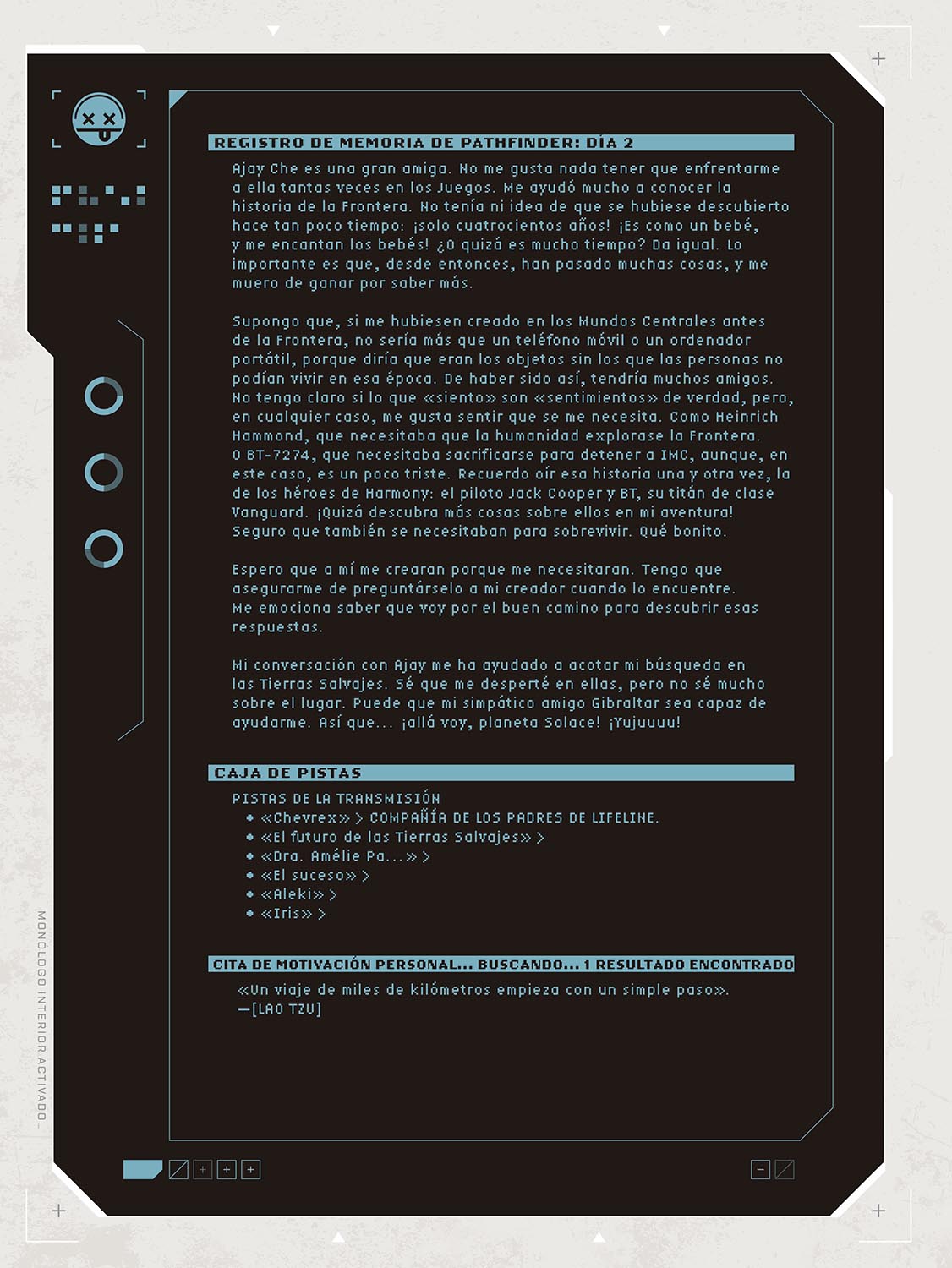 Pathfinder crea una crónica de su viaje a través de varios lugares de las Tierras Salvajes para entrevistar a sus compañeros leyendas. ¡Todo con la esperanza de encontrar a su creador!