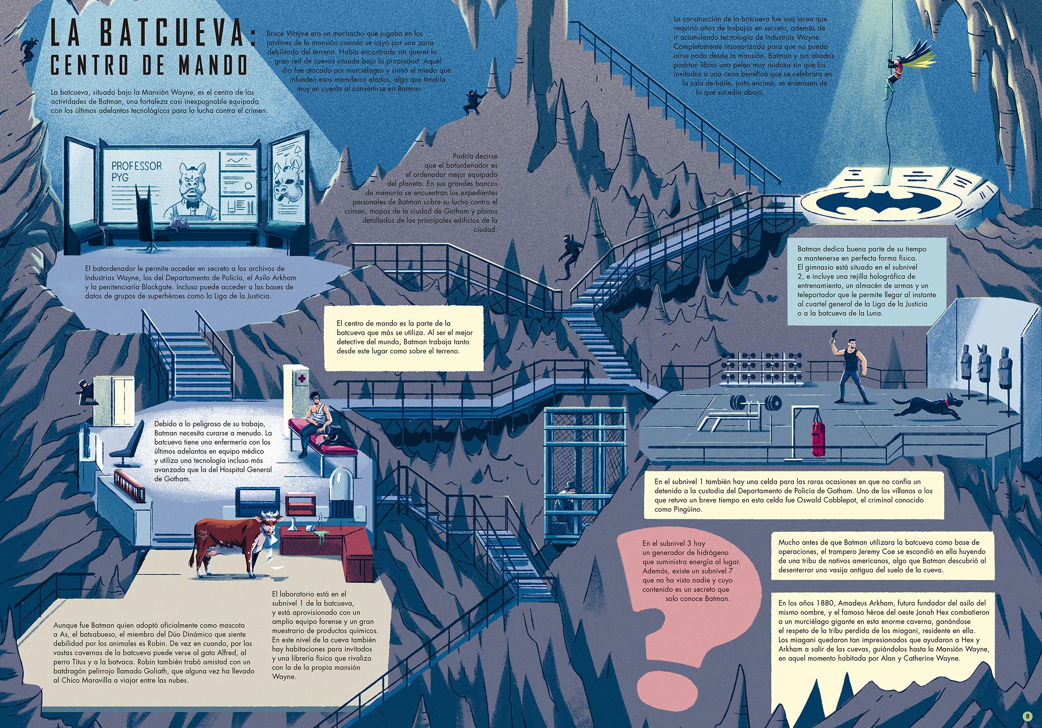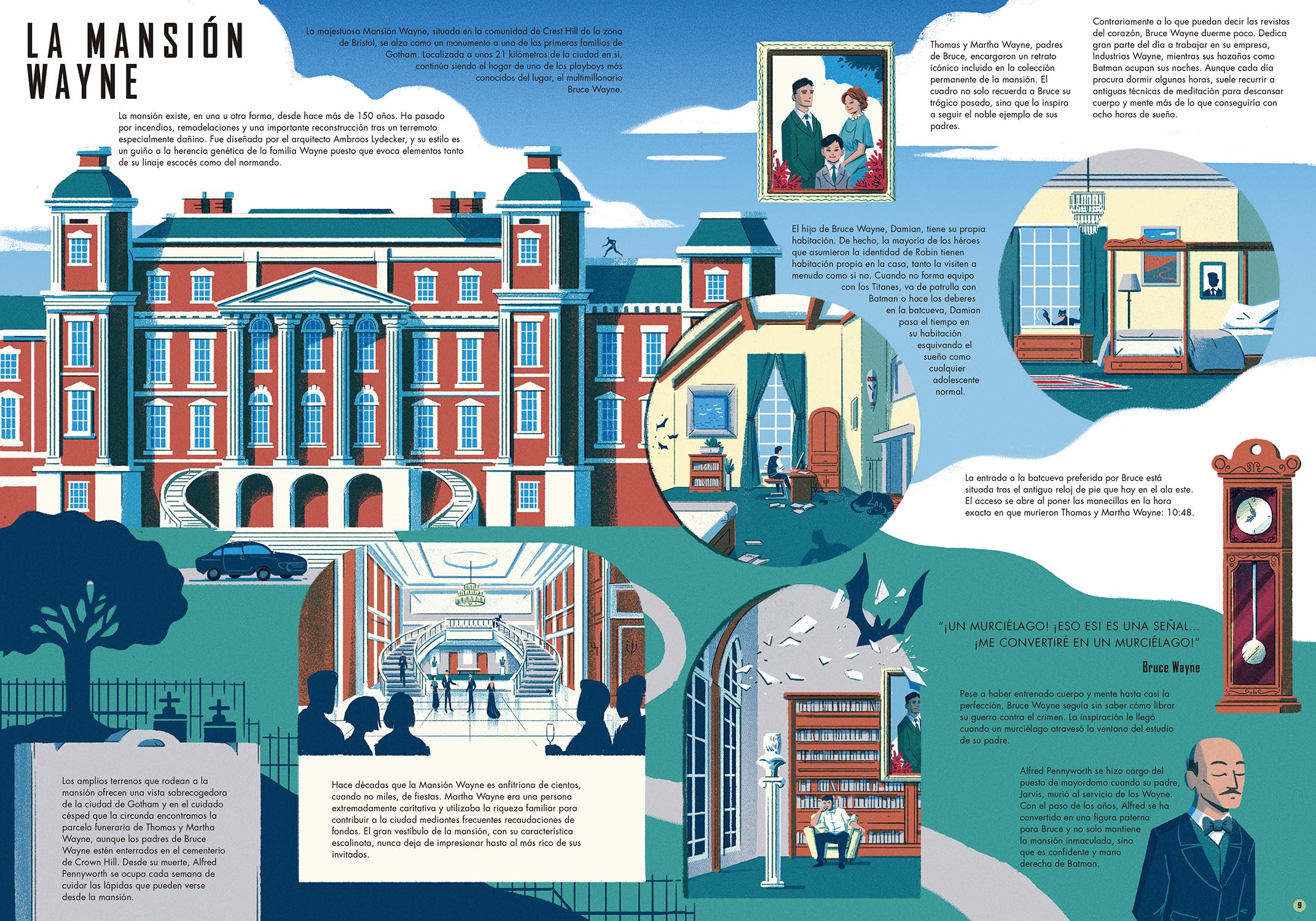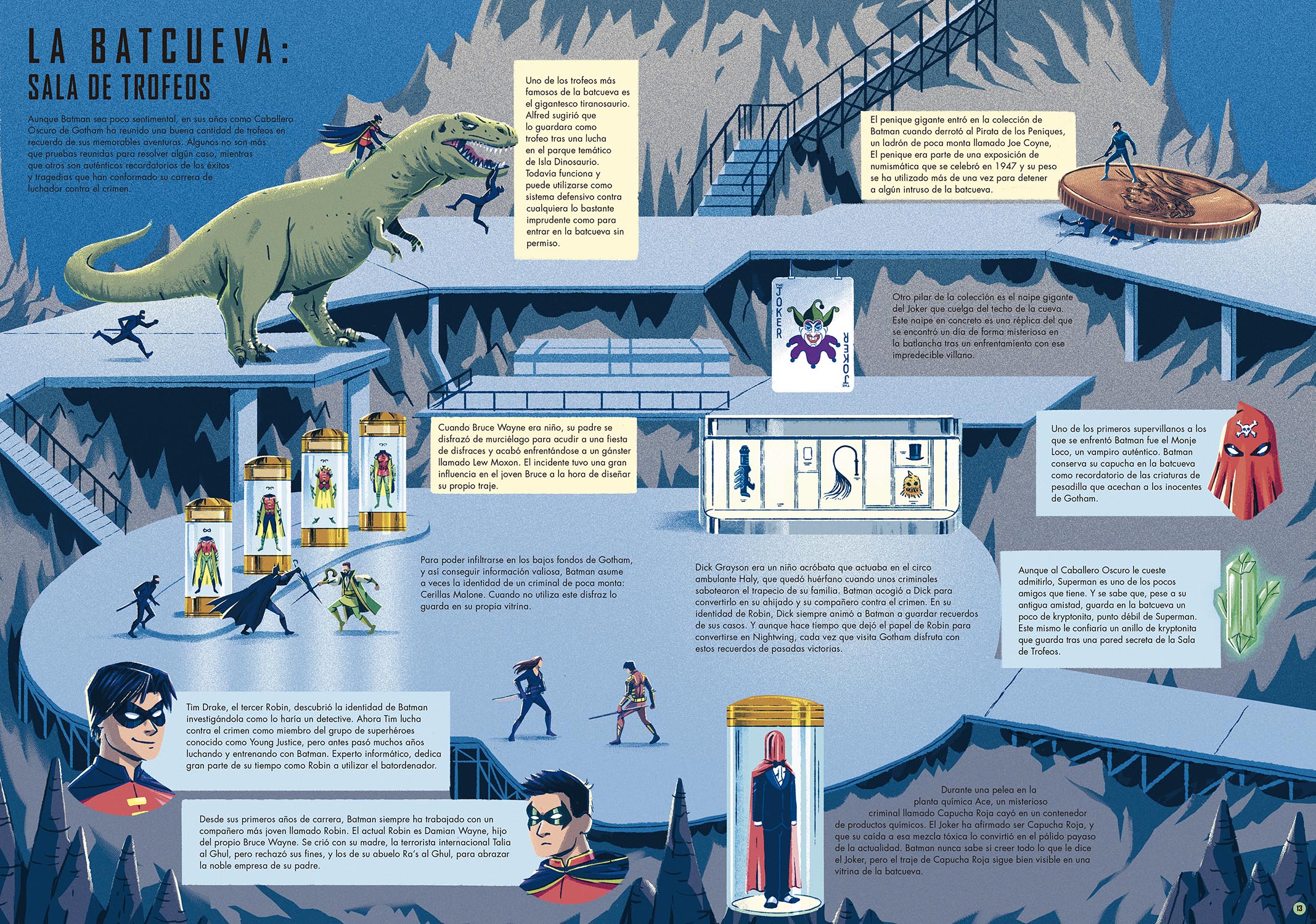 Explora la ciudad de Gotham, ¡hogar del misterioso luchador contra el crimen llamado Batman! A través de estas páginas harás un viaje completamente ilustrado desde las profundidades de la Batcueva hasta el Asilo Arkham, pasando por la Mansión Wayne y las calles de esta ciudad infestada por el crimen. Lo sabrás todo sobre su oscura historia, conocerás a sus famosos villanos, como el Joker y el Pingüino, y descubrirás lo que hacen Batman, Robin y los demás héroes para detenerlos.