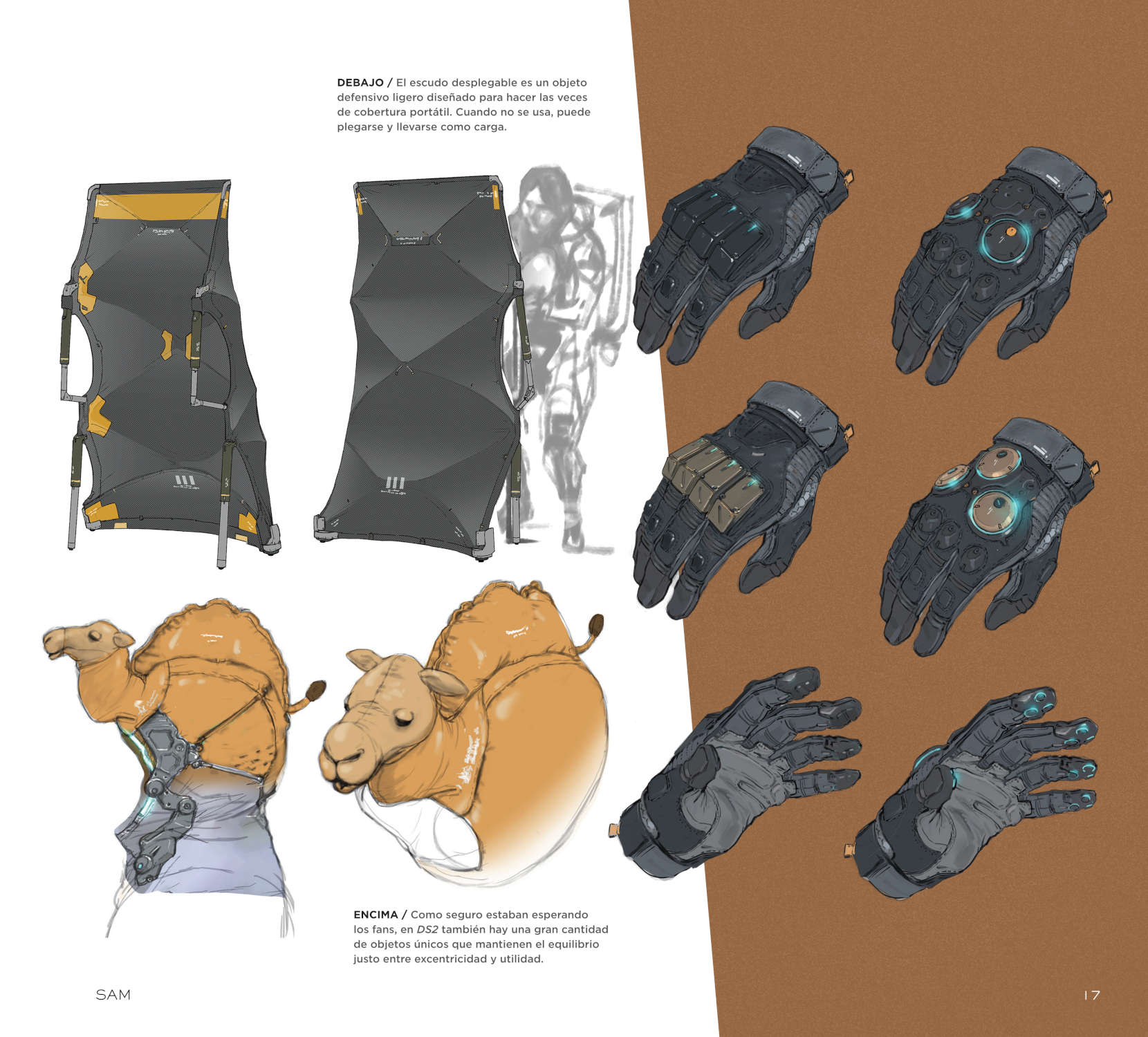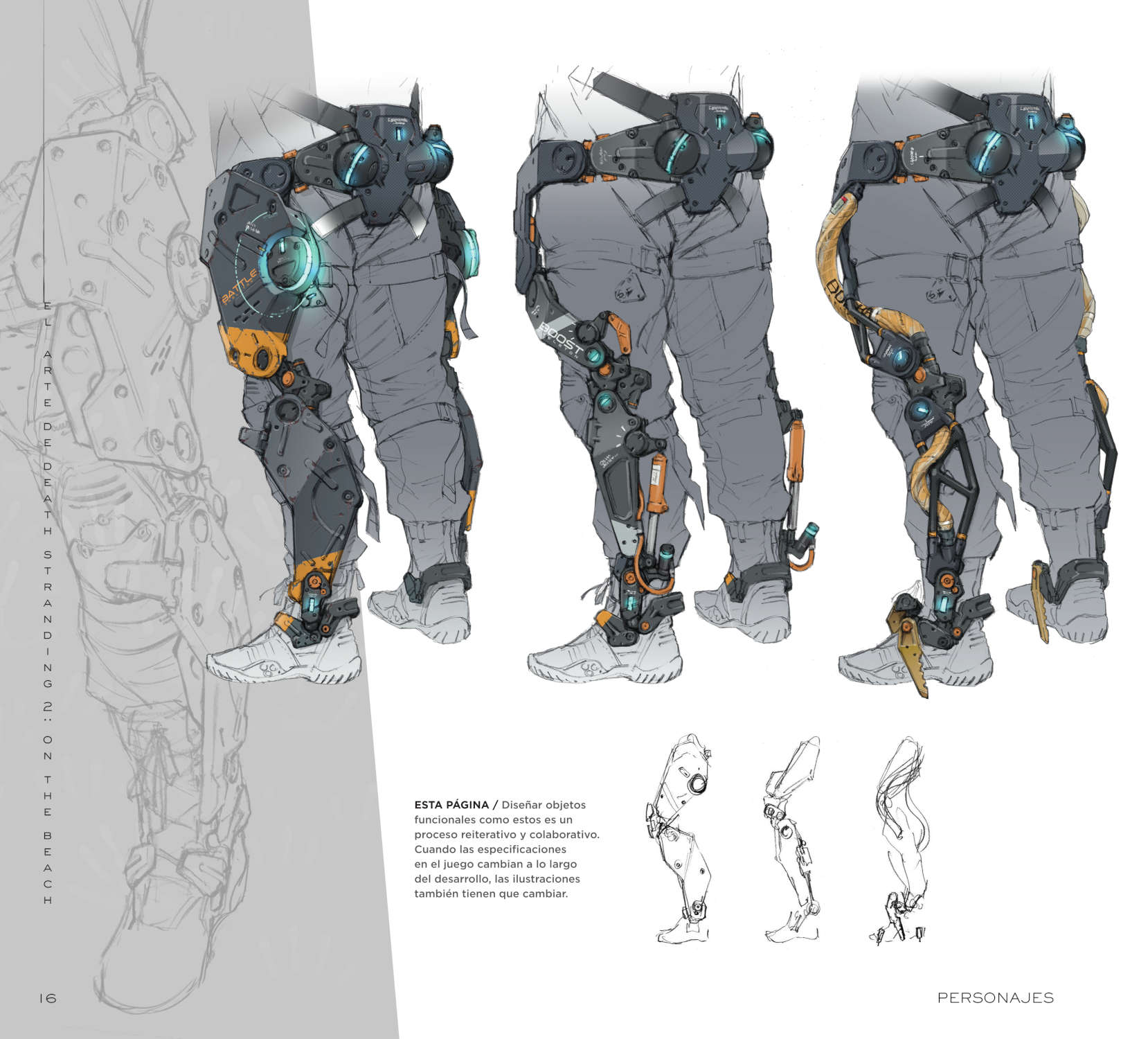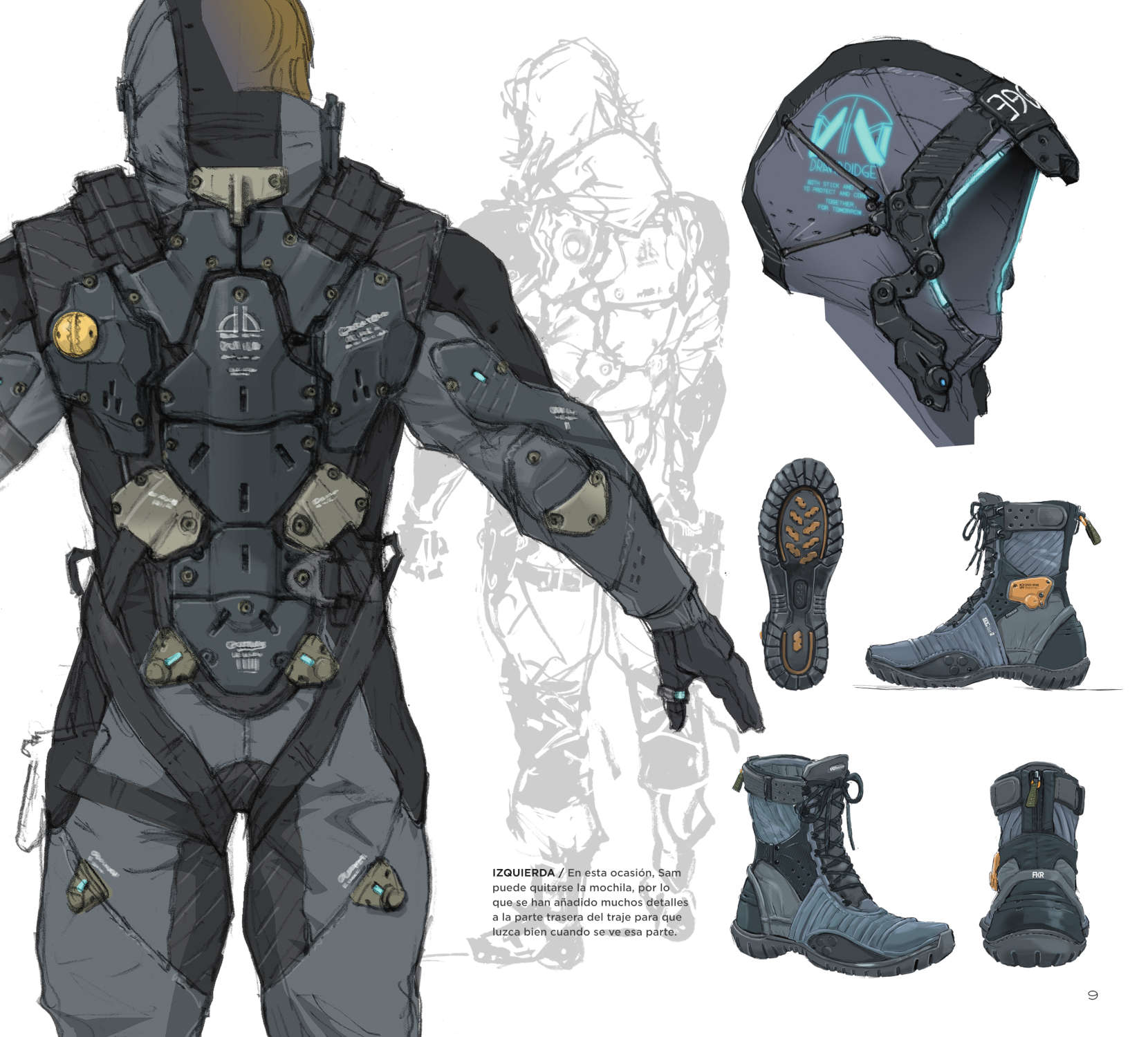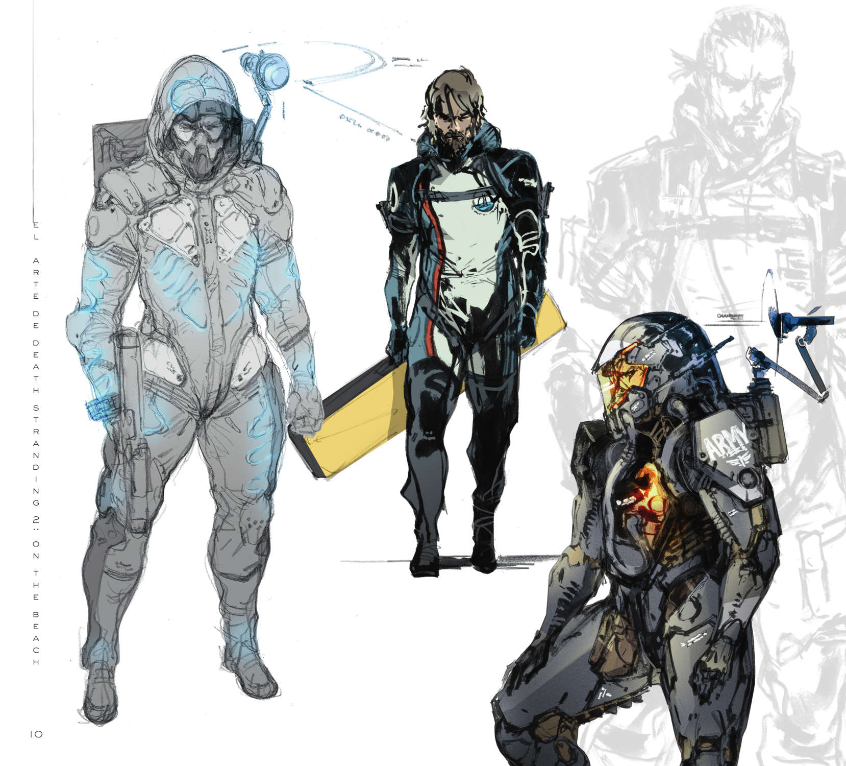 El arte de Death Stranding 2: On The Beach está repleto de arte conceptual de personajes, equipo, ubicaciones y criaturas que aparecen en el videojuego, así como conceptos iniciales y descartados, incluido arte del aclamado diseñador de personajes y vehículos Yoji Shinkawa.