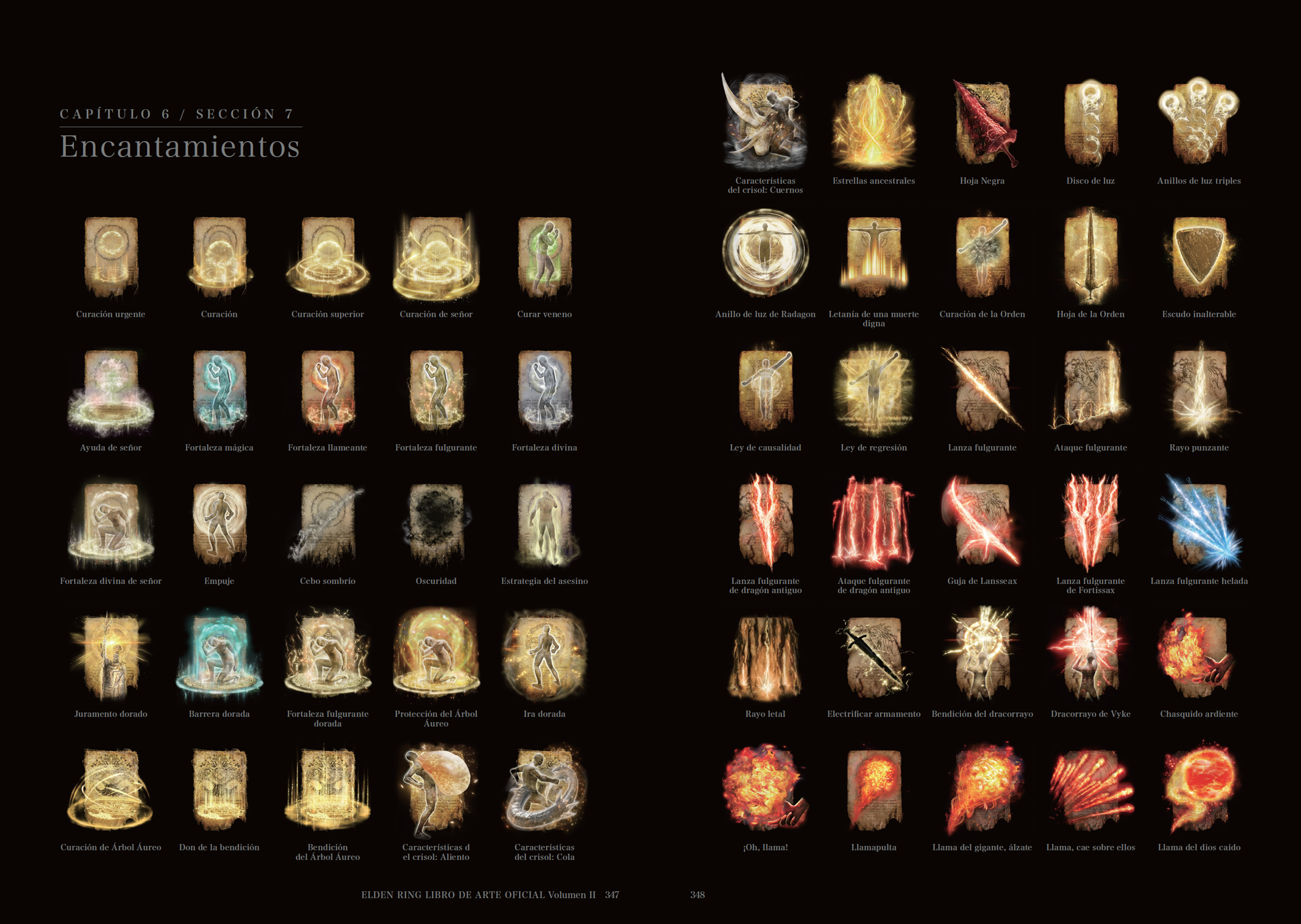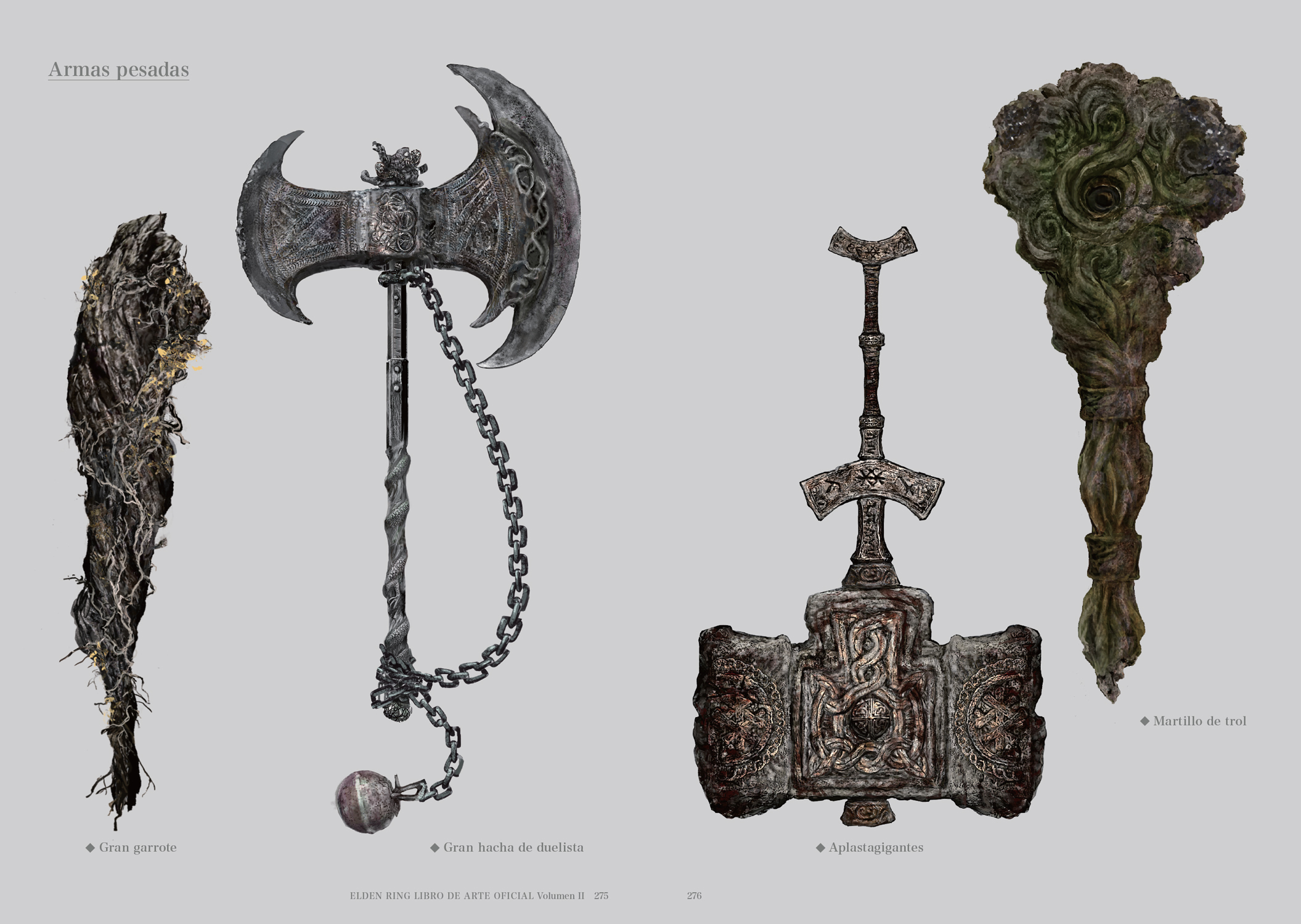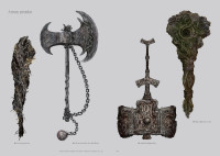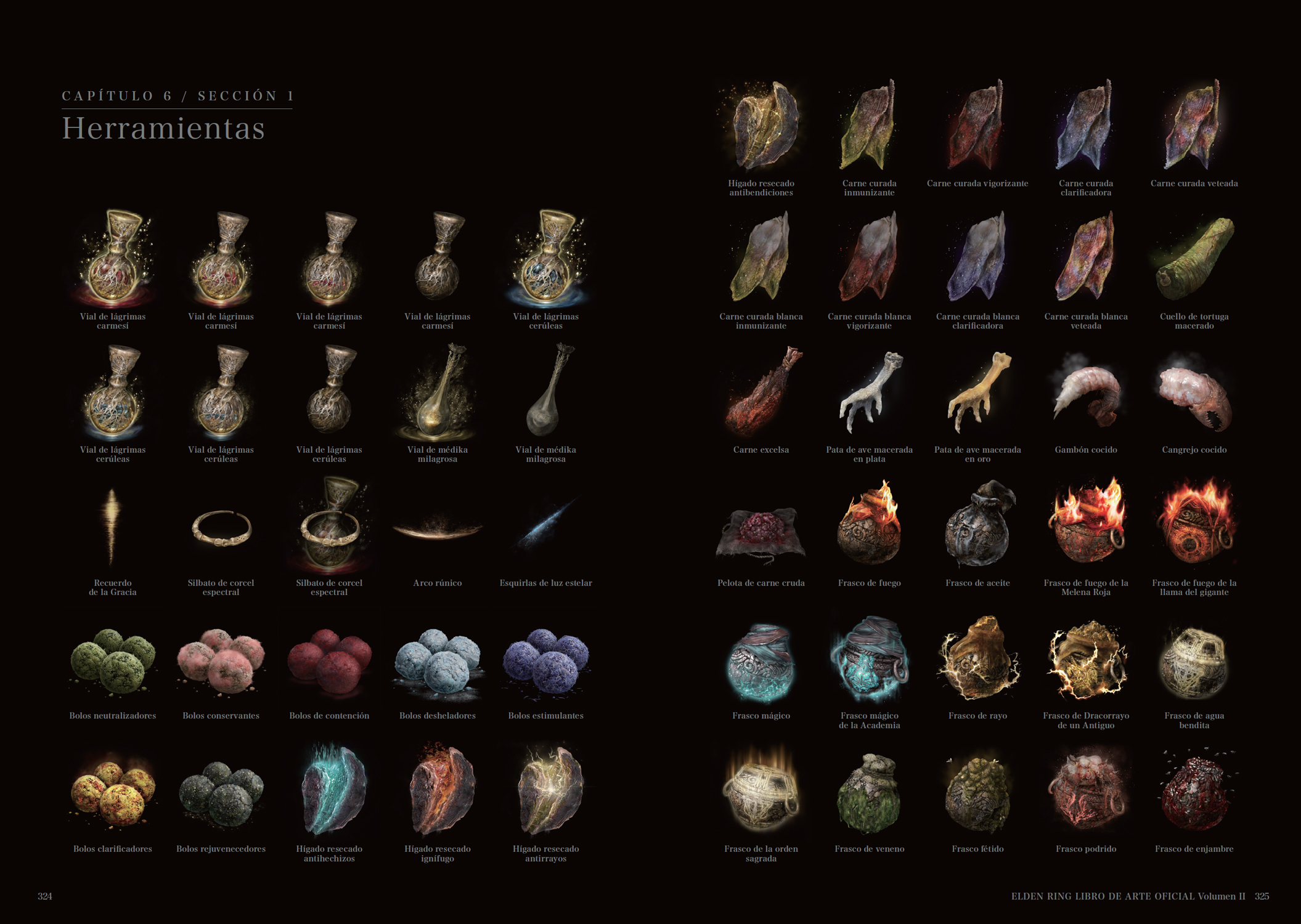 En el Volumen II de ELDEN RING: LIBRO DE ARTE OFICIAL encontrarás diseños de los enemigos que ponen en peligro a nuestro héroe, de las armas usadas para eliminarlos y de todos los objetos que le ayudarán en su viaje. La presente edición cuenta con el mismo contenido que la edición original japonesa.